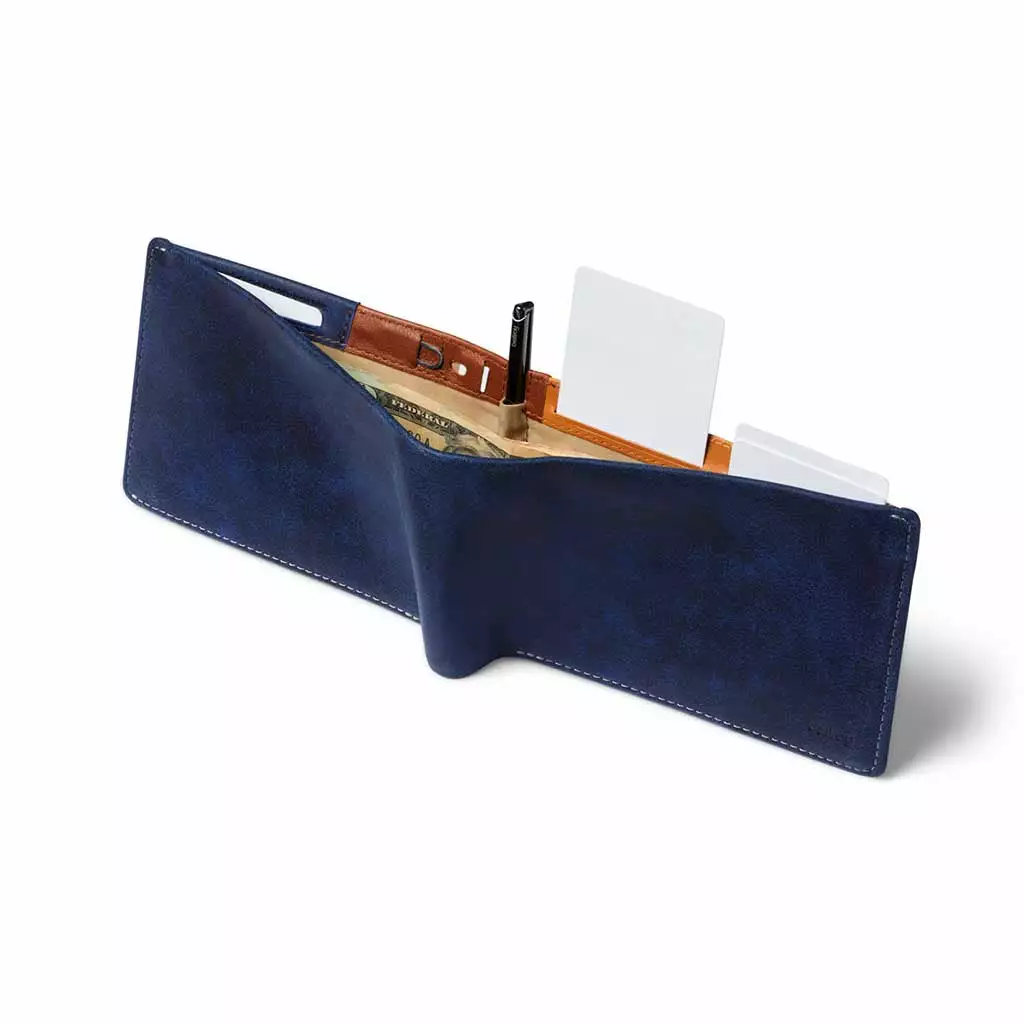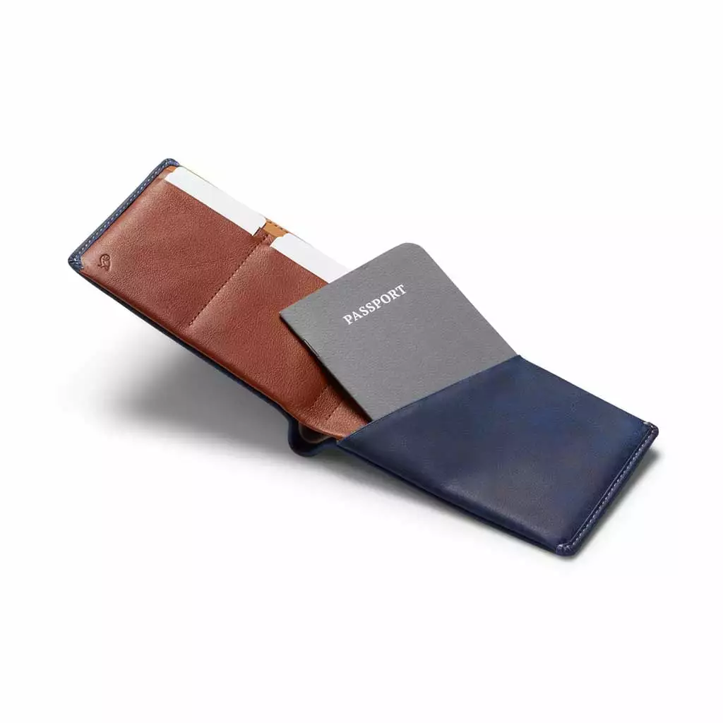 A premium passport wallet with space for cash, cards and a micro travel pen
