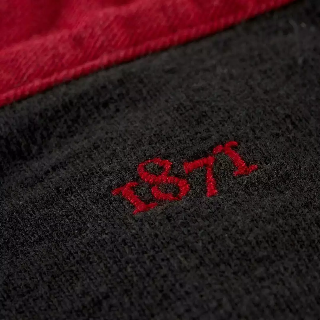 - Embroidered 1871 detailing on back of neck