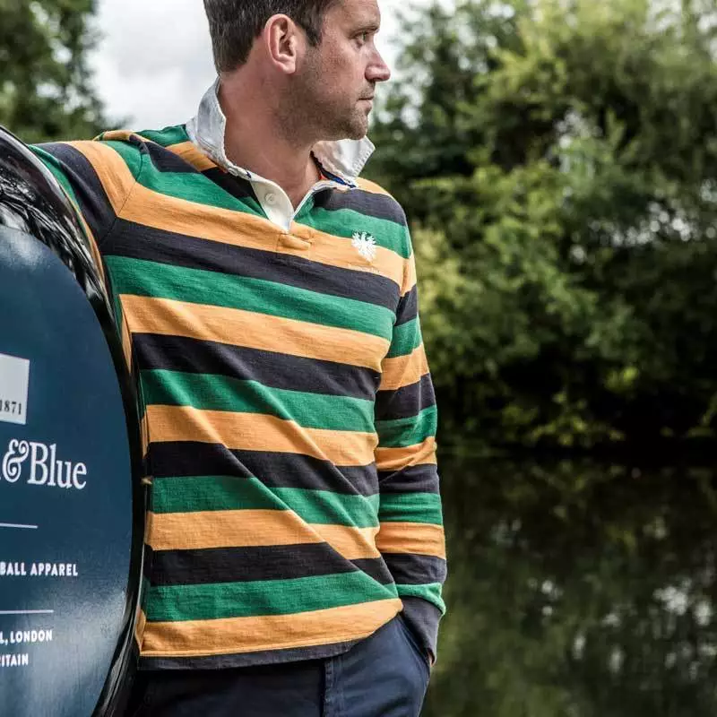 In 1871, 21 rugby clubs came together in a restaurant in Pall Mall, London, to codify the sport they loved, creating a unified set of rules for the first time. Nearly 150 years later, Black & Blue 1871 have created a series of classic rugby shirts inspired by the style of those original clubs, fusing a traditional look with exceptional quality heavy slub cotton. Designed in the UK and manufactured with care and precision in Portugal, these shirts are built to withstand the rigours of everyday modern life, whether you’re hard at work at home or cheering on your local team at the pub.