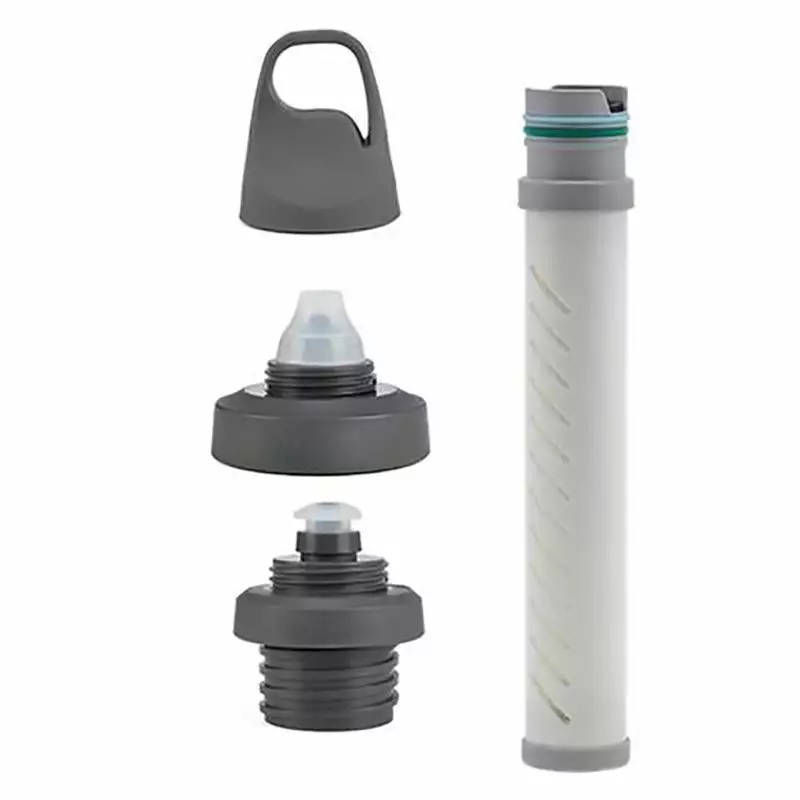 - Advanced water filter kit includes replaceable water filter, two cap sizes (narrow and wide mouth), standard and sports mouthpieces, and a leak-proof lid