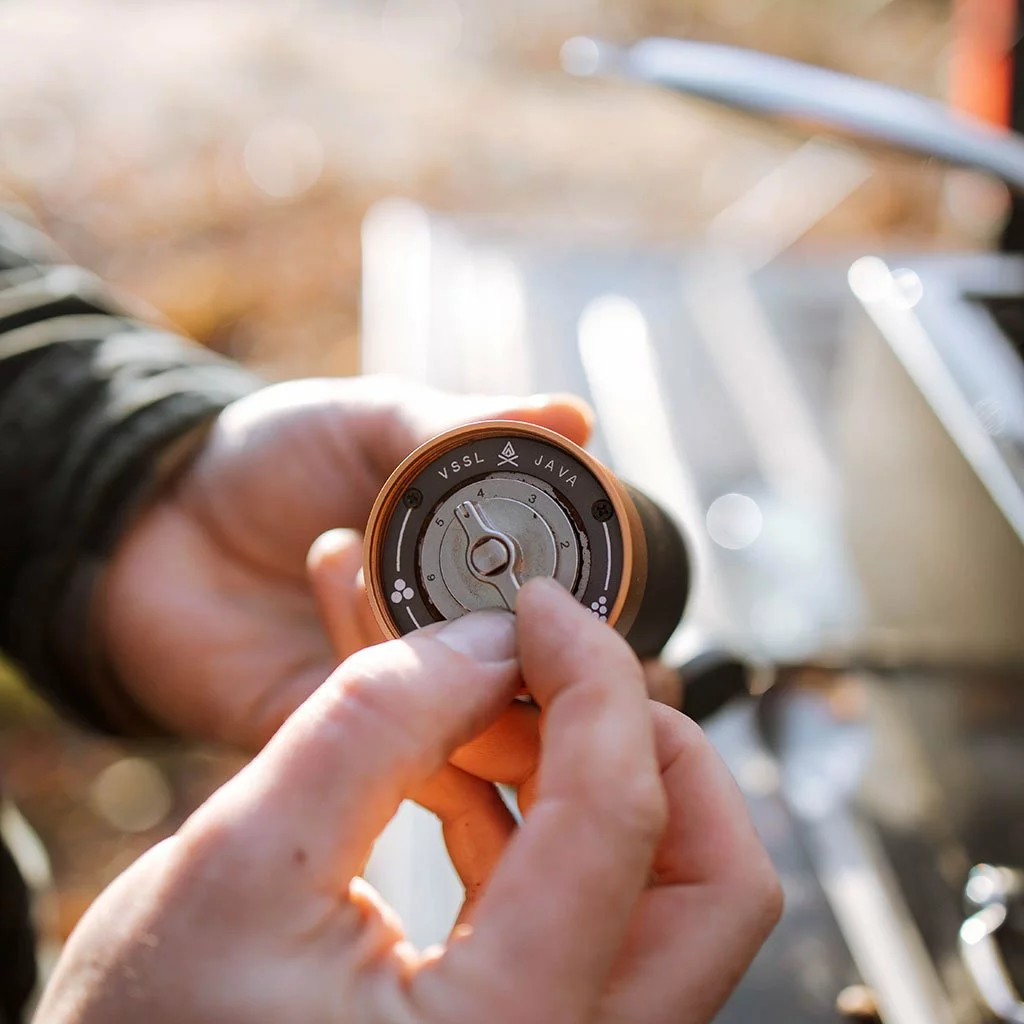 Why should life on the trail or a weekend in the wilderness mean going without your customary morning coffee? VSSL’s Java is the perfect accessory for dawn starts in the great outdoors. A hand coffee grinder designed with durability, portability and functionality in mind, it is crafted from sleek yet rugged aircraft-grade aluminium, with extendable grinder handles and an ergonomic grip. Inside, stainless steel burrs uniformly grind your beans rather than pulverising them, delivering a great cup of coffee every time. With 50 grind settings, it’s also versatile enough to be used with a variety of brew methods, wherever and however you like it