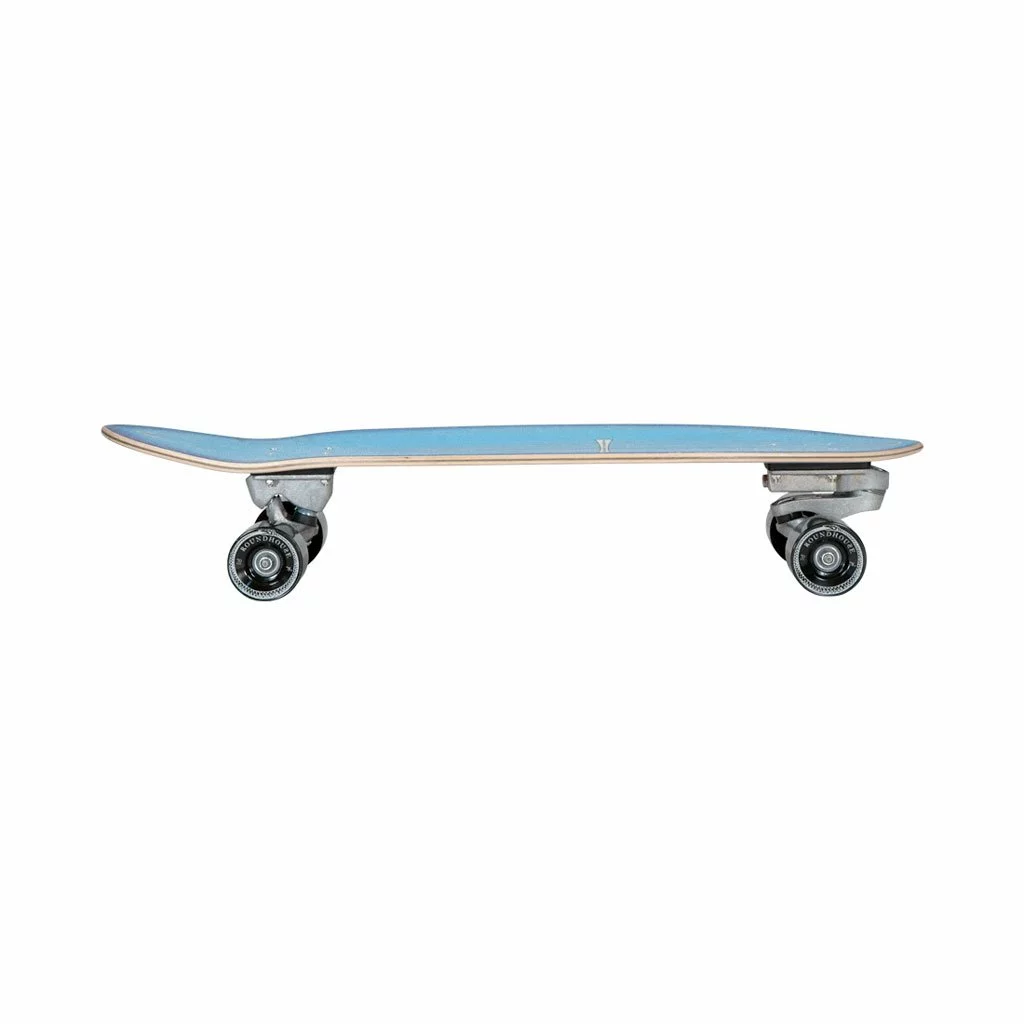This retro-styled surfskate board takes inspiration from the 1970s, a decade of true innovation in surfing. It was also an era when custom airbrushing made each board a unique work of art, a one-of-a-kind hot rod for the ocean. The Blue Haze channels that creative spirit with a striking airbrushed full-top graphic, protected by a clear sugarcoat grip for a full-colour experience under your feet. The board shape is a classic rounded pin with a wider nose, providing greater front foot area for pushing and trimming with a laid-back style.