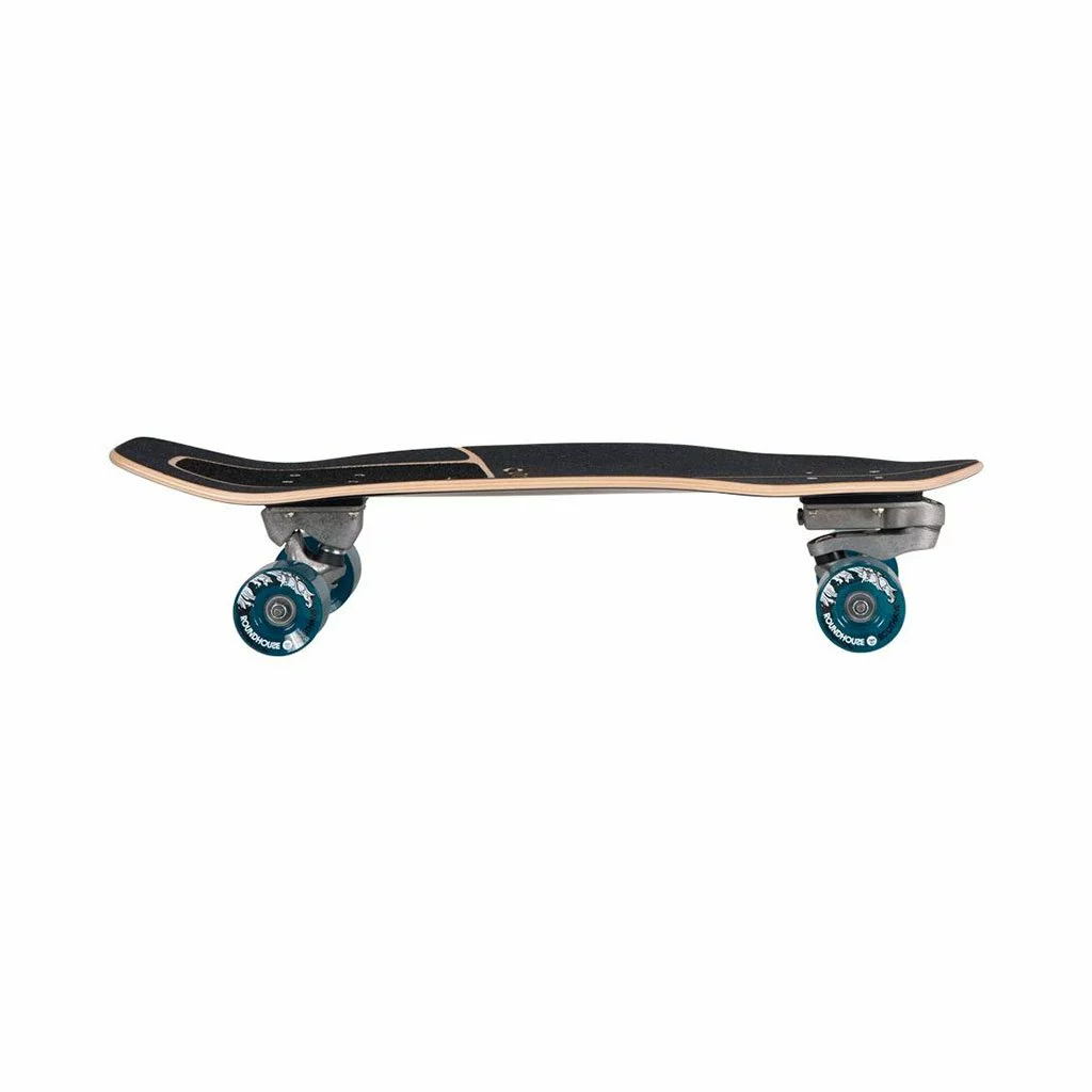 Carver’s obsessive search for surfskate perfection never stops. For years they’ve played with taller risers and bigger wheel setups for more radical manoeuvrability. With the 32” Super Surfer, this custom set-up is finally available to the masses – with big, juicy 75mm Ecothane wheels to roll through cutbacks with grip and heft. It’s ideal for those riders looking to get serious about their surfing and performance training. As well as what’s underneath, the board itself has a radical approach thanks to a concave Hyperspoon mould, delivering the most leverage that it is possible to get from a piece of wood. A big wave graphic emphasises the board’s pure, surfy feel.