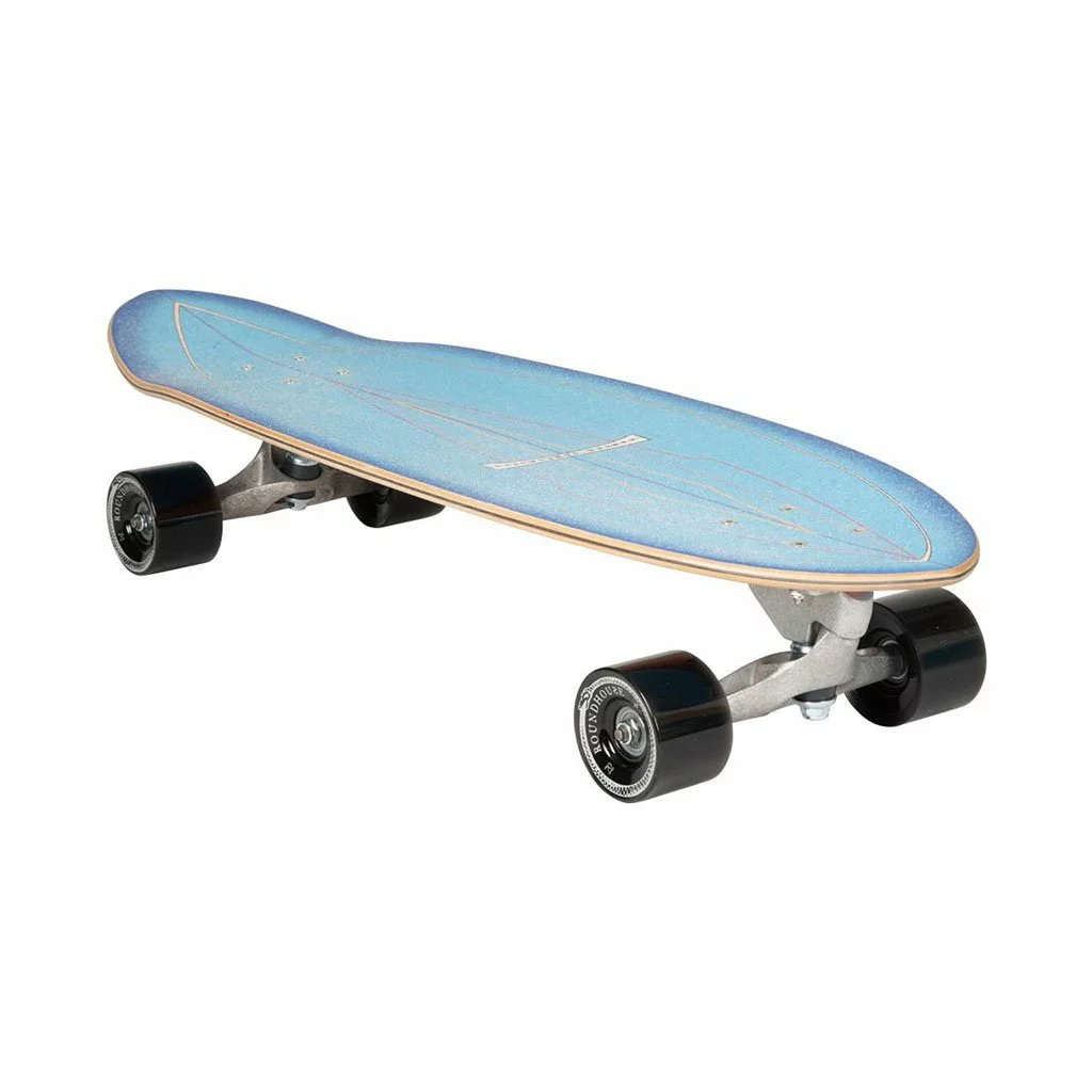 This retro-styled surfskate board takes inspiration from the 1970s, a decade of true innovation in surfing. It was also an era when custom airbrushing made each board a unique work of art, a one-of-a-kind hot rod for the ocean. The Blue Haze channels that creative spirit with a striking airbrushed full-top graphic, protected by a clear sugarcoat grip for a full-colour experience under your feet. The board shape is a classic rounded pin with a wider nose, providing greater front foot area for pushing and trimming with a laid-back style.