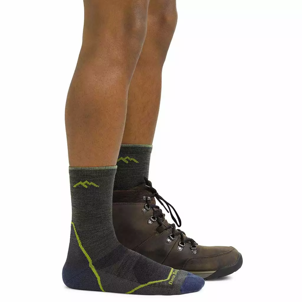 Hikers have walked millions of miles in Darn Tough’s cushioned Hiker socks. These tried and tested trail companions feature the brand’s legendary performance fit to eliminate slipping, bunching and blisters. The seamless construction and fine gauge knit offers both durability and comfort, while a merino wool blend optimises breathability and performance by wicking moisture away from the skin to keep your feet cool. Merino’s naturally antimicrobial properties also help to repel bacteria and odours. The micro crew is a shorter sock that comes just above the top of a standard hiking boot, and this lightweight version offers a low profile in modern trail footwear without sacrificing mile-after-mile performance. You also get increased breathability with mesh panels on top of the foot, a new smooth ribbing upper and extended cushioning over the Achilles