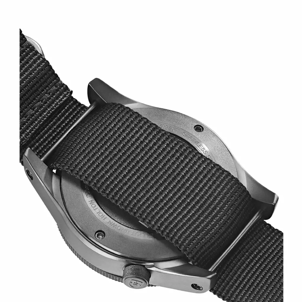 - Strap material: Extra long fitted black NATO strap is woven from closely knitted polypropylene with laser-cut holes and gunmetal grey hardware. It is extra-long (fits up to 265mm wrist) enabling it to be worn over the cuff of a drysuit or wetsuit.