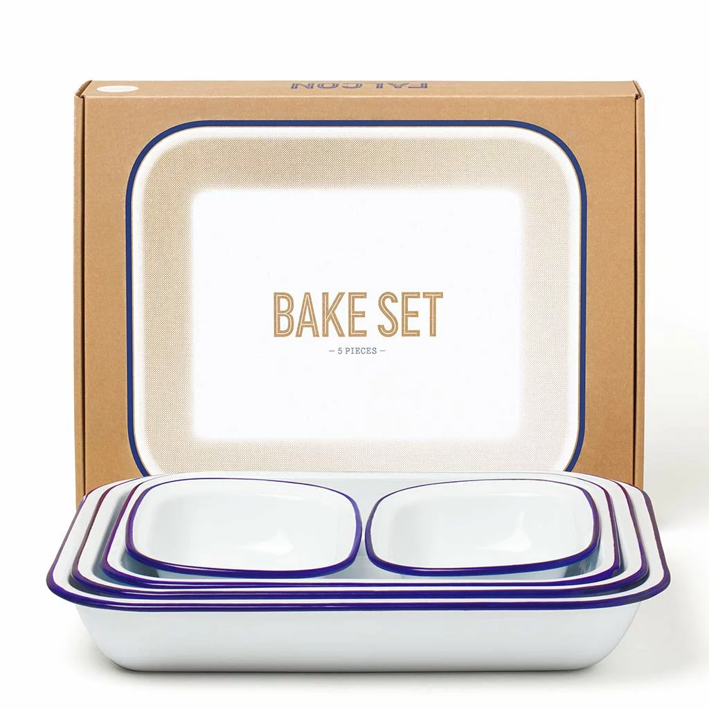 There’s nothing like the taste of simple, heart-warming home-cooked food. The only decision is what to make. A classic lasagne? Mum’s shepherd’s pie? Sunday roast? Whatever you decide to knock up, this five-piece enamelware bake set can handle it. It has the style and the looks to go straight from oven to table too, with Falcon’s signature ice white colourway and contrast rim pattern in bold, striking hues.