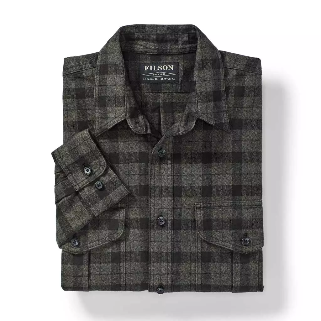 Often imitated, never bettered, Filson’s Alaskan Guide Shirt has been worn by cowboys, ranchers and tradesmen for more than a quarter of a century. The secret to its success is the fact that it guarantees unfailing comfort and durability, season after season. Made from hardwearing flannel that is brushed on both sides, it perfectly balances softness and warmth. This makes the Alaskan Guide the ideal shirt to wear over a T-shirt in cool weather, since the pre-shrunk cotton breathes easily yet the dense, tight weave blocks chilly breezes. Other details point to Filson’s authentic outdoor heritage – pleated rear shoulders allow unrestricted ease of motion, whether you’re shouldering a shotgun, casting a fly or swinging an axe. Dual flapped chest pockets are gusset-expandable for bulkier items and fasten with virtually unbreakable custom Filson buttons