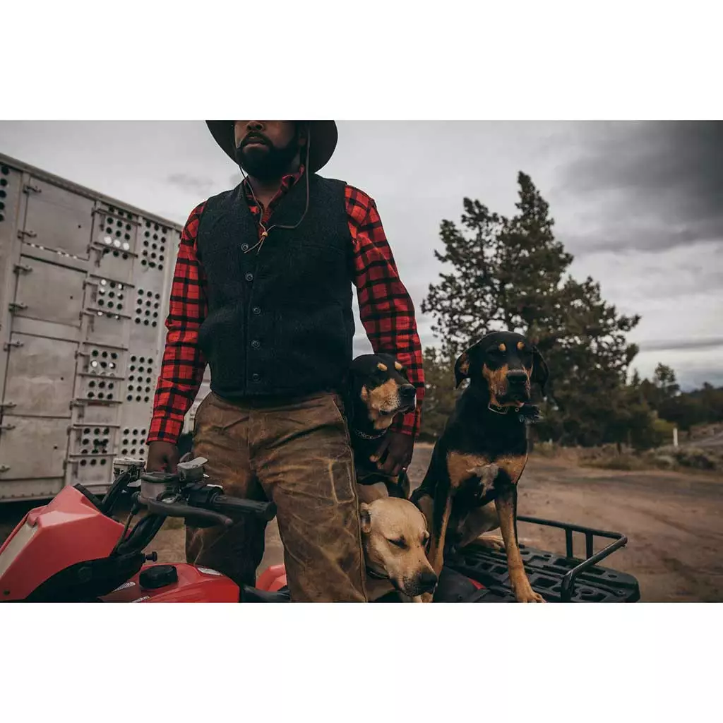 Often imitated, never bettered, Filson’s Alaskan Guide Shirt has been worn by cowboys, ranchers and tradesmen for more than a quarter of a century. The secret to its success is the fact that it guarantees unfailing comfort and durability, season after season. Made from hardwearing flannel that is brushed on both sides, it perfectly balances softness and warmth. This makes the Alaskan Guide the ideal shirt to wear over a T-shirt in cool weather, since the pre-shrunk cotton breathes easily yet the dense, tight weave blocks chilly breezes. Other details point to Filson’s authentic outdoor heritage – pleated rear shoulders allow unrestricted ease of motion, whether you’re shouldering a shotgun, casting a fly or swinging an axe. Dual flapped chest pockets are gusset-expandable for bulkier items and fasten with virtually unbreakable custom Filson buttons