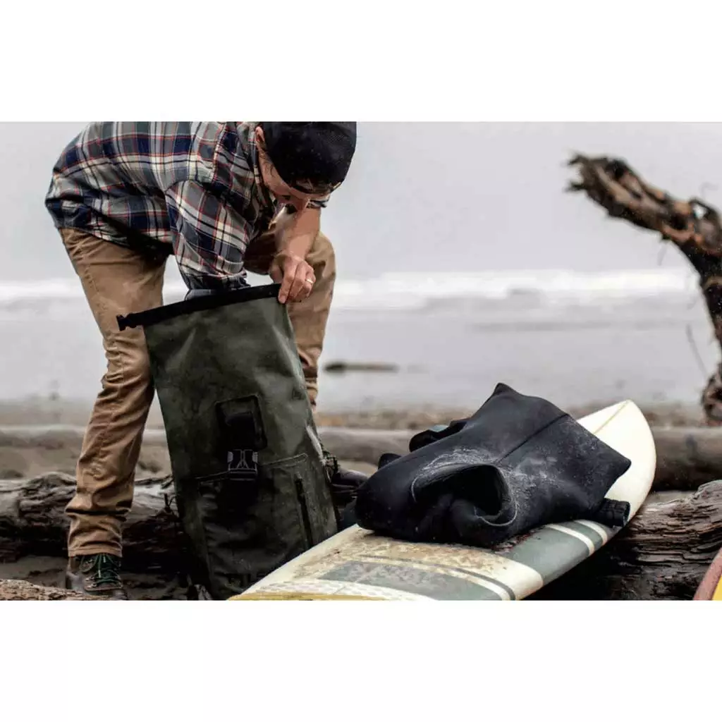 - Roll-top design with buckle provides water-tight seal and doubles as a handle