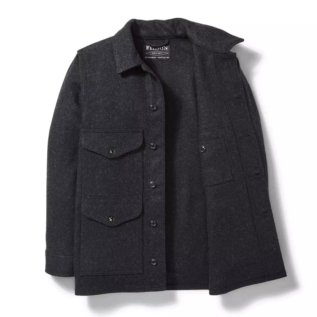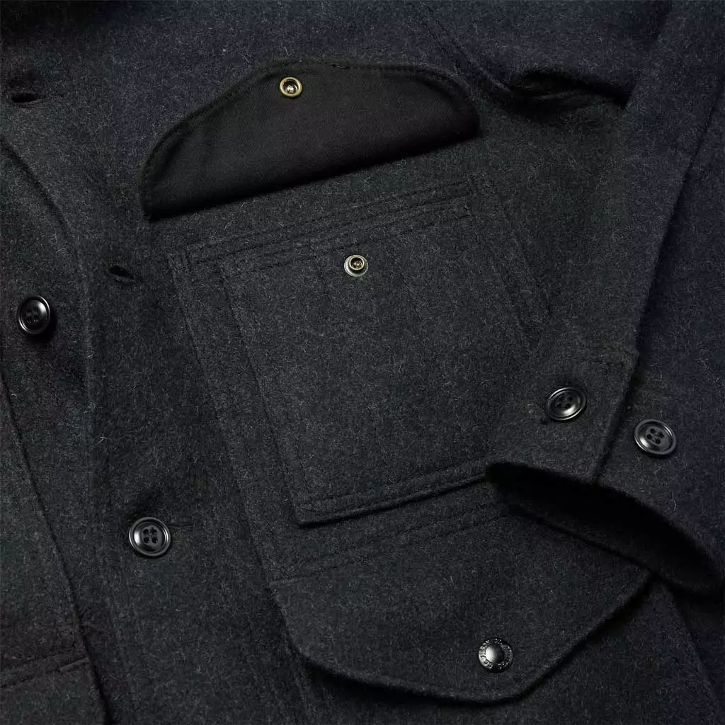 - Tightly woven Mackinaw wool is water-resistant and insulates wet or dry