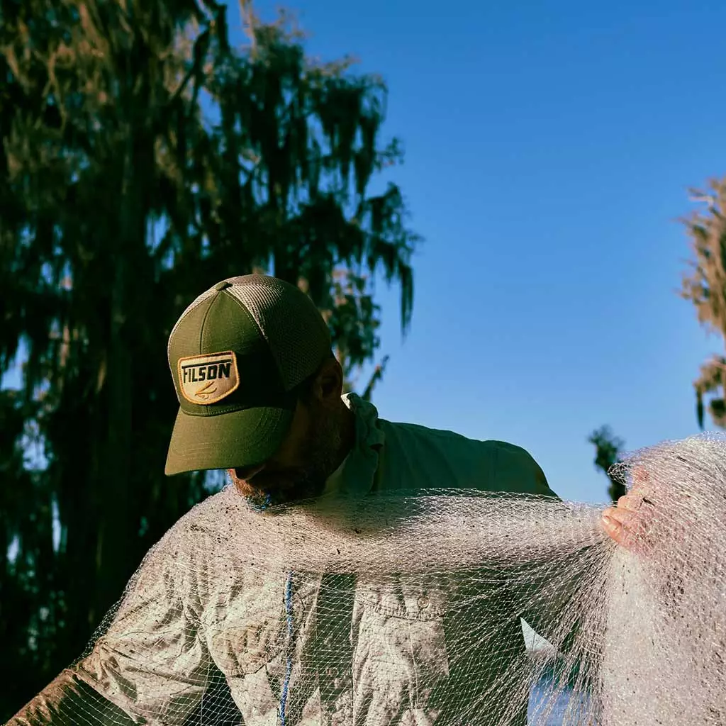 Filson’s oil finish Tin Cloth is designed to endure years of use in the rain-soaked Pacific Northwest, which makes this Logger Mesh Cap perfect for outdoor adventure in any season. It features polyester mesh side and rear panels for ventilation and comfort, too. The adjustable rear strap is fixed with a brass buckle, which adds to the classic style of this outdoors cap.