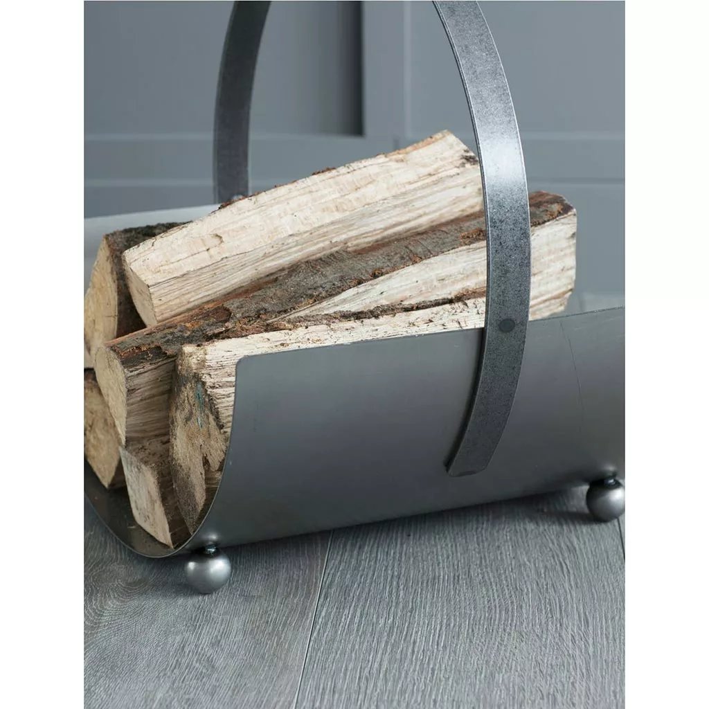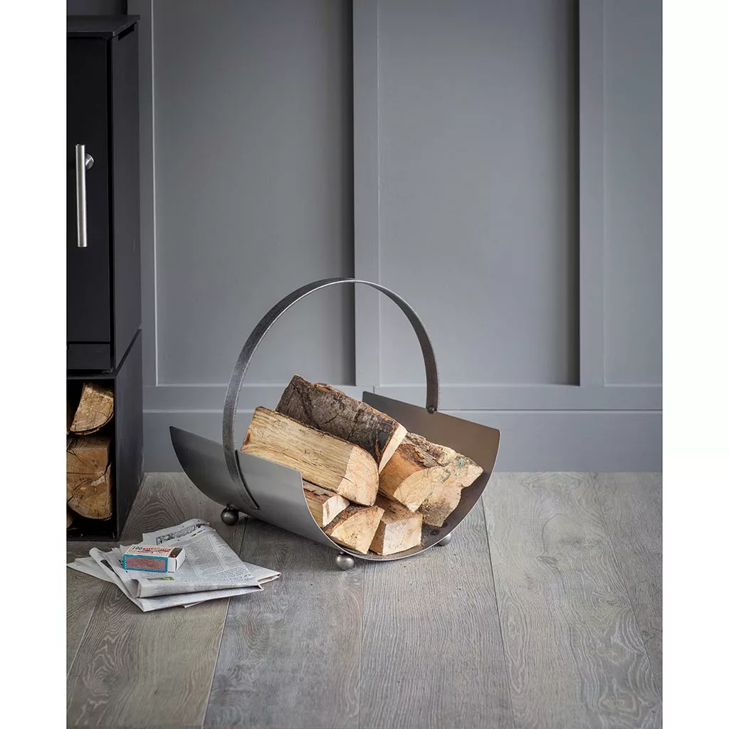 On a chill winter night there’s nothing more welcoming than a roaring hearth with a stack of neatly cut logs beside it, promising a warm, cosy evening by the fire. With its contemporary, minimalist design, the Lodge Round Log Carrier makes the perfect addition to your fireplace. Crafted from sheet steel, it features a matching banded handle and ball feet for added stability. It is practical too, since the curved shape allows for maximum storage space whilst simultaneously displaying the natural grain of the wood