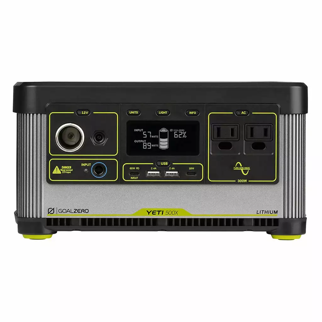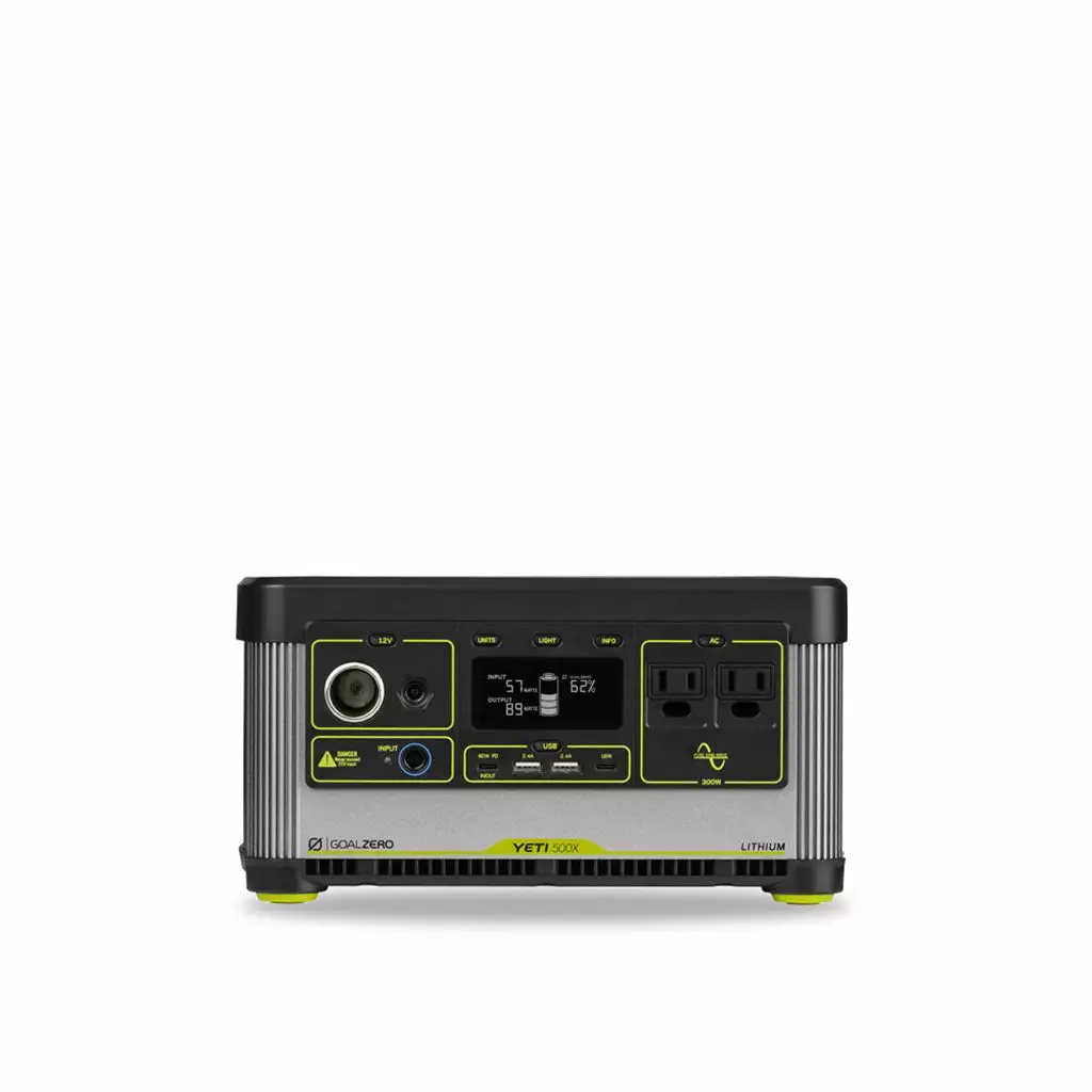 - Off-grid? Charge the Yeti 500X from the sun with a Goal Zero portable solar panel. If you’re home, keep it topped off from a wall outlet