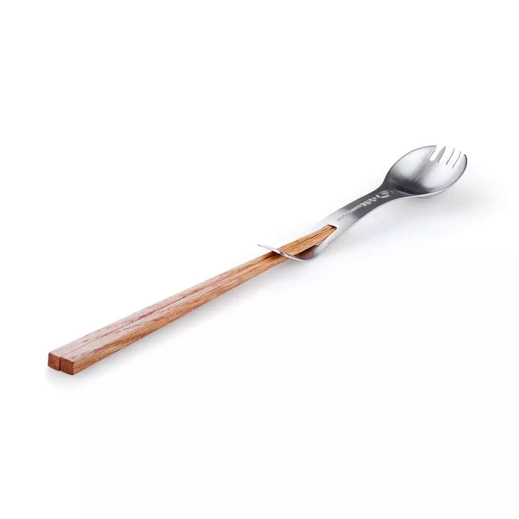 - Chopsticks slide into spork handle to create a long-handled utensil perfect for scooping, scraping or stirring pouch meals and narrow cooking pots