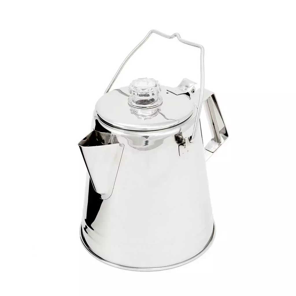 The waft of freshly-brewed coffee is enough to rouse enough the doziest camper from their slumber, encouraging them to get up and get on out. In fact, making a big pot of morning coffee on camp is a great ritual that, in our experience, can really help any group to bond. The rugged stainless steel GSI Outdoors Glacier Perc coffee percolator is the ideal camp kettle – though it’ll also work great on your kitchen hob too. This practical 8-cup size is perfect for families or groups of friends. Comprised of a kettle, an inner basket with cover and an integral hinged lid, the perc is made from heavy-gauge 18/8 stainless steel that is resistant to corrosion and will withstand dings and dents. A pour spout minimises dripping, while a stainless-steel wire bail at the top enables you to hang it over the fire. Uniquely, the central PercView dome is made of glass to give you an insight into the brewing process, making for great coffee every time