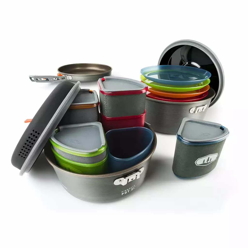 Though it’s tempting just to take your oldest and most battered pans with you when you go camping – you know, the ones that are no longer fit for the kitchen – that approach rarely makes for efficient, fuss-free camp cooking. One, thicker pans take ages to heat up, and on a camp stove you get hotspots that means a breakfast fry often turns into a burnt-on mess. Then there’s the fact that they are bulky and awkward to pack, taking up most of the space in the car. Fortunately, with their best-selling Pinnacle Camper set, GSI have made things easy. This is a complete cooking and eating set-up for four, meticulously designed to offer total versatility and top-quality performance plus ultimate space efficiency. The anodised aluminium pots and frying pan are scratch proof and deliver efficient, even heating. They’re Teflon-coated with Radiance Technology for amazing non-stick performance, easy cleaning, and amazing heat transfer that reaches temperature 25% faster than other coatings. When it’s time to eat, you’ve got four 14oz mugs with insulated sleeves and sip through lids, four 14oz bowls, and four plates – all colour coded so there’s no mix ups. There’s also a pot gripper and a strainer lid for easy draining. And – of course – it all nests together perfectly into the storage bag that doubles as a camp sink. If only all your other camping kit was this neat and tidy