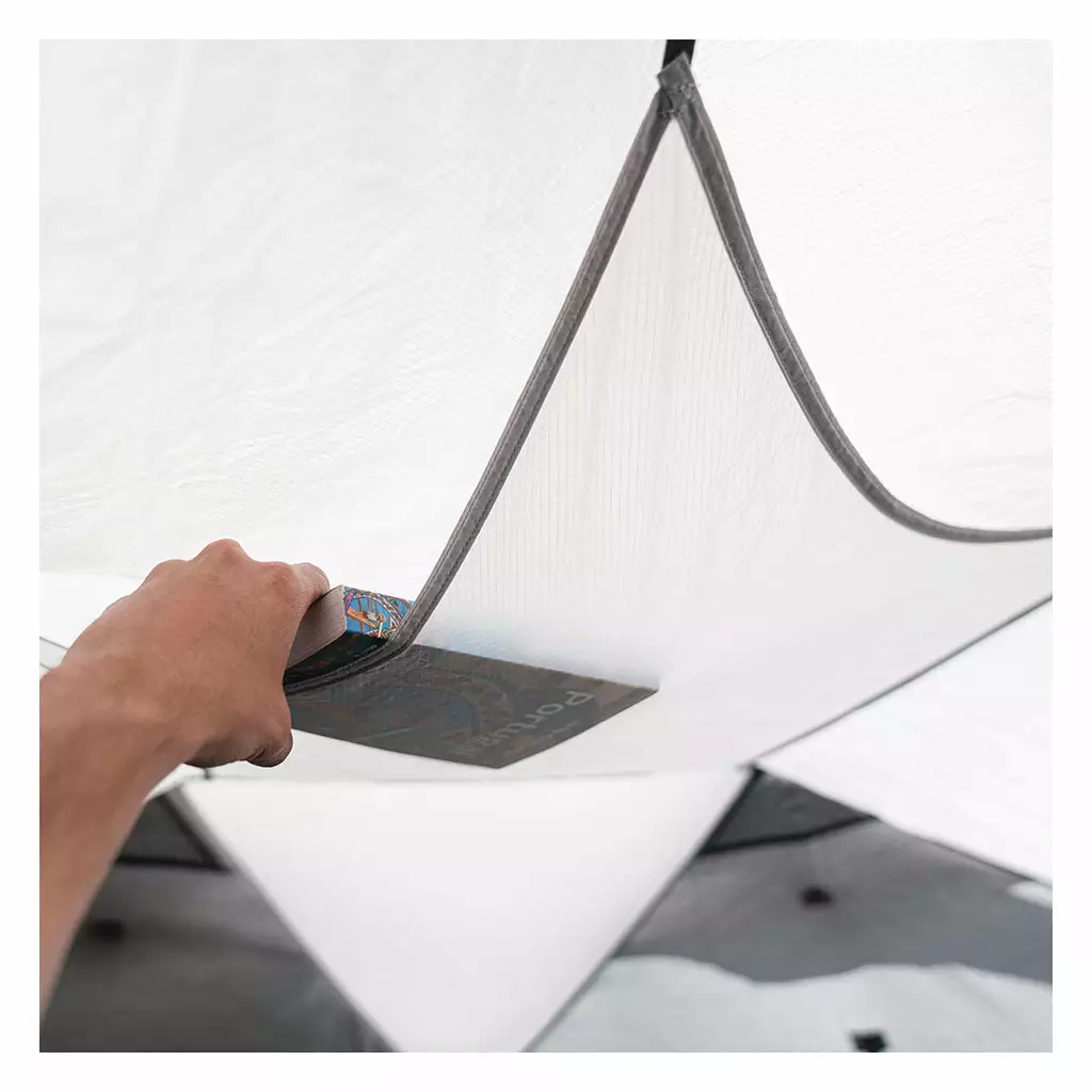 - Sewn-in storage pockets and an extra storage pouch in the roof