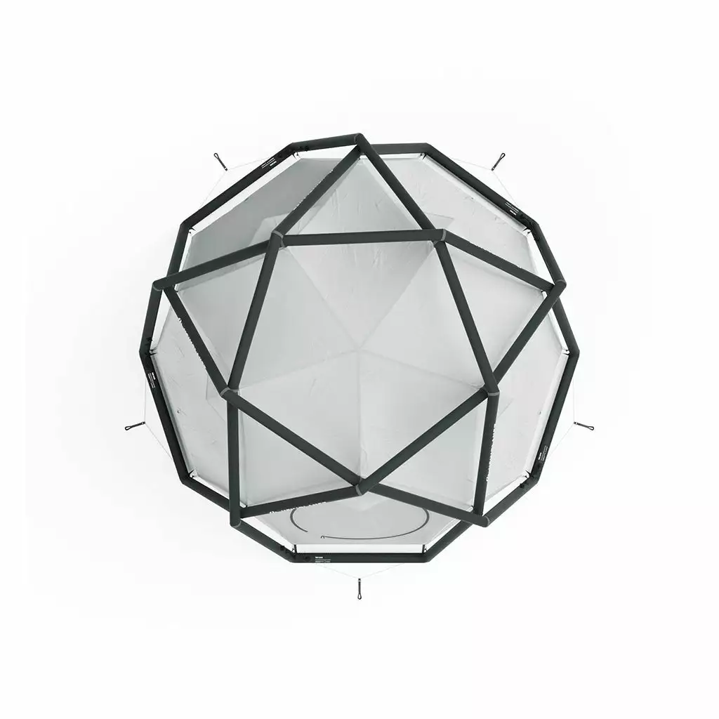 - The centre of the tent is an additional support point, enabling the formation of a star-shaped roof, giving a point-symmetrical pitch with five drains for rain