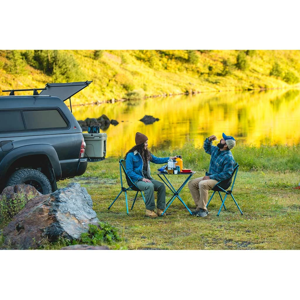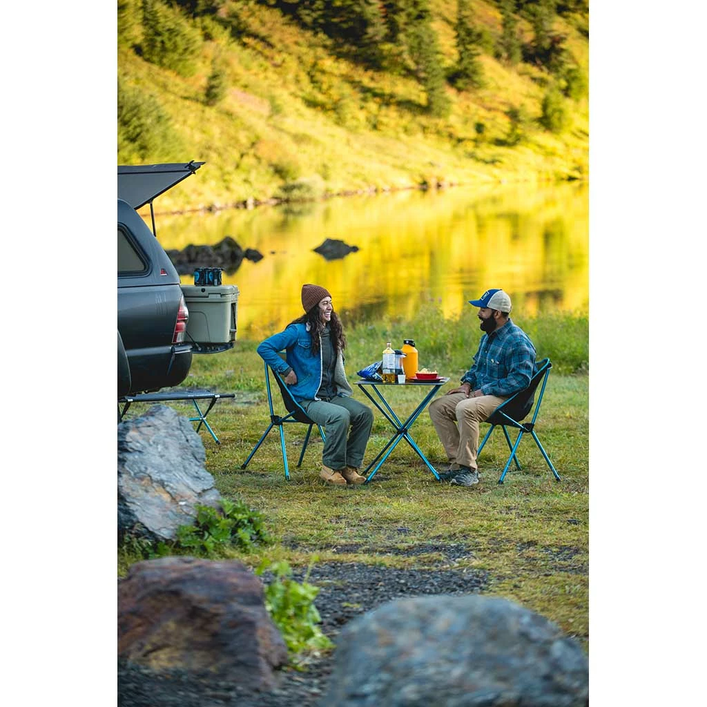 Hands up who makes creaky old person noises when they get up? Alas, us too. And comfy as they are, camp chairs don’t help – since they always seem to be so low to the ground. But here’s one that isn’t. The Cafe Chair from Helinox stands as tall as a normal chair that you might have in your house, making it a whole lot more dignified to get out of. Like all Helinox’s camp chairs, the build quality is outstanding, featuring an ultra-lightweight yet durable aluminium alloy frame that’ll give you many years of service. What’s more, that extra bit of height makes it ideal for those well-bred campers who like to eat at an actual table without having to rest their chin on their plate and hold their knife and fork at shoulder height