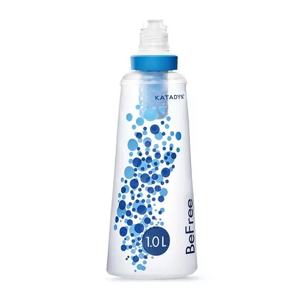 Be free to drink anytime, anywhere: with the Katadyn BeFree, you’ll no longer have to carry a hydration pack or water bottles on your trail runs, mountain bike tours, canoe and kayak trips or fishing trips. This compact and ultralight hollow fibre filter weighs just 63 g, but is able to remove bacteria, cysts and sediment thanks to its ultra-fine pore size of 0.1 micron (0.0001 mm). The collapsible, soft-sided 1,000 ml PVA- and BPA-free flask packs small to fit into tight spaces such as running shorts, cycling jerseys and paddling or fishing vests. With a flow rate of up to 2 litres per minute and a total capacity of 1,000 litres, depending on the water quality, it’s a fast and light filter that will see you through plenty of adventures. It’s fuss-free too. The membrane is easily cleaned at home or in the field by simply shaking or swishing the filter in water, with no backflushing or specials tools required