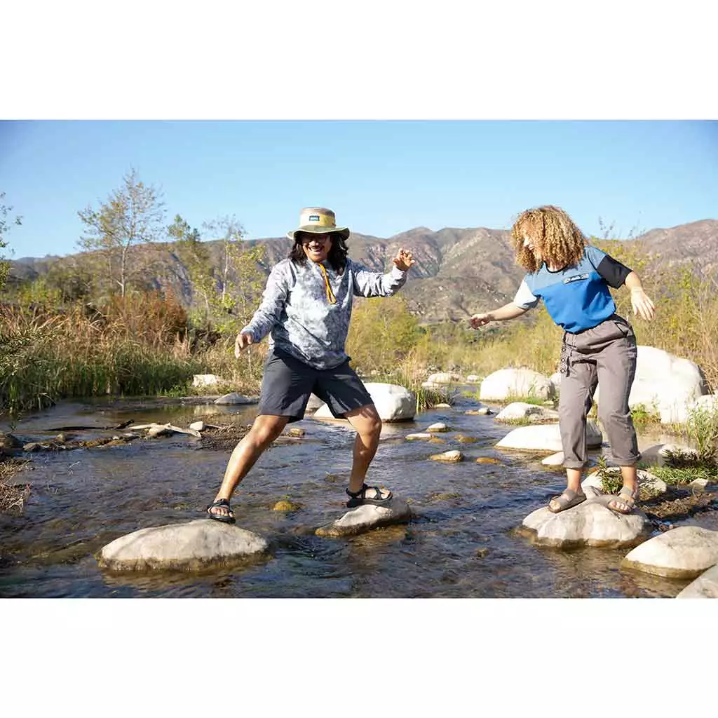 From humble beginnings flogging Strapcaps out of the boot of his car in Seattle, Barry’s since expanded to produce a whole array of durable outdoor kit with a laid-back, van-lifer vibe. The KAVU range takes in everything from sling bags to swim shorts, and while they’re serious about producing great gear that’s made to last, they’re also not afraid to have a laugh. Their prints are bold, playful, and in some cases so loud that they’ll take some considerable chutzpah to carry off – but that’s what makes them so much fun.