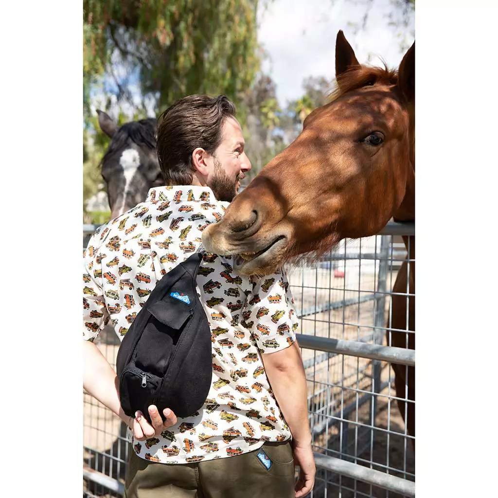 From humble beginnings flogging Strapcaps out of the boot of his car in Seattle, Barry’s since expanded to produce a whole array of durable outdoor kit with a laid-back, van-lifer vibe. The KAVU range takes in everything from sling bags to swim shorts, and while they’re serious about producing great gear that’s made to last, they’re also not afraid to have a laugh. Their prints are bold, playful, and in some cases so loud that they’ll take some considerable chutzpah to carry off – but that’s what makes them so much fun.