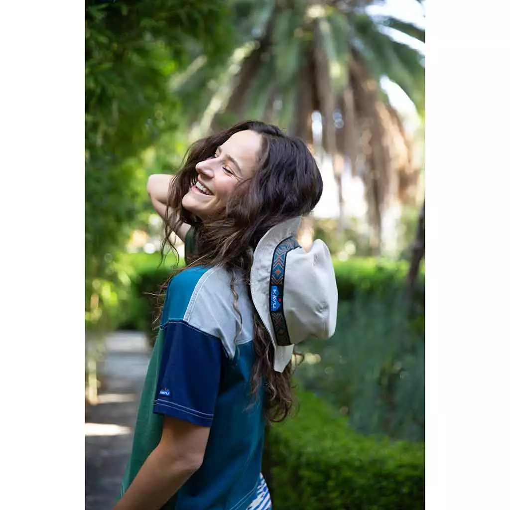 Now here’s an origin story for you. Back in the early nineties, fishing boat skipper Barry Barr was fed up with wearing cheap trucker caps that got snatched off his head in storms, never to be seen again. He decided to make a super-durable cap that wouldn’t blow off whatever the weather, and he did it by stitching the webbing material from a Teva sandal all the way around the crown. Turned out his ‘Strapcap’ was a hit, and KAVU was born.