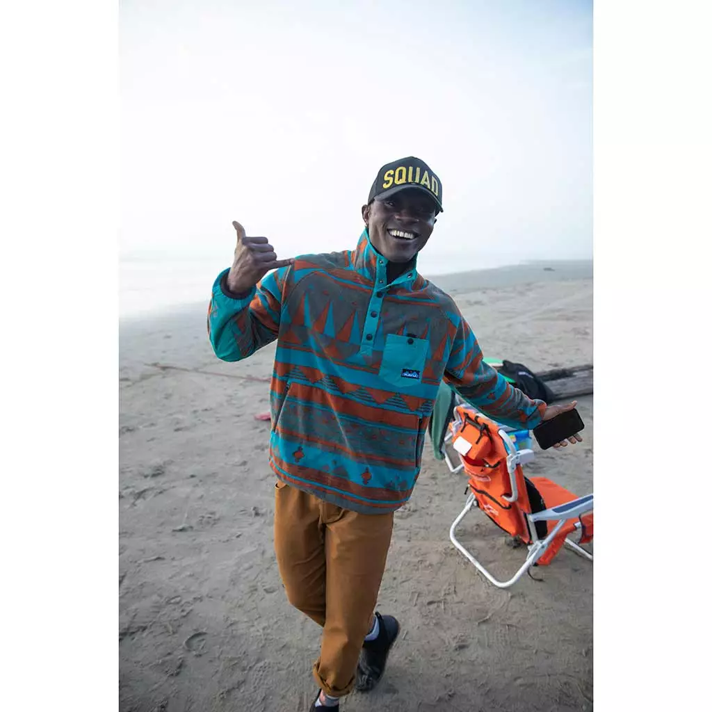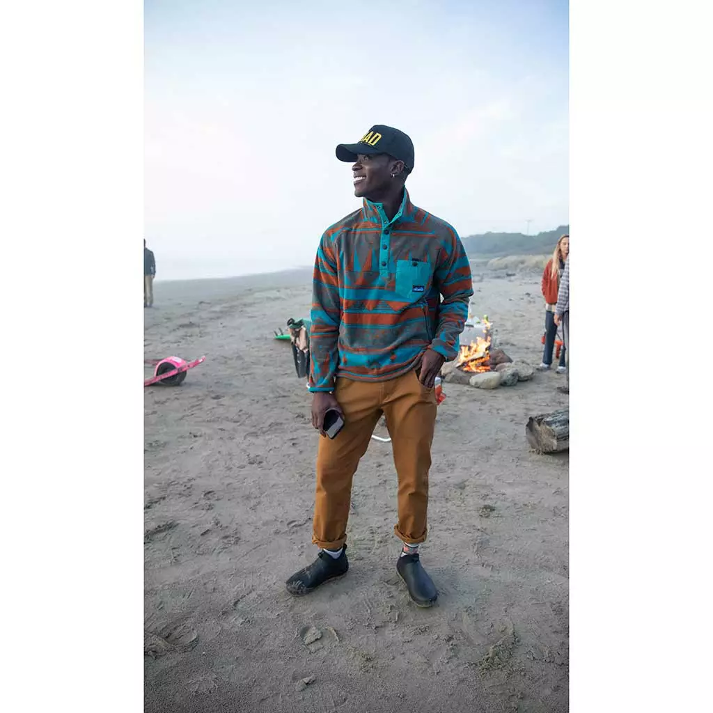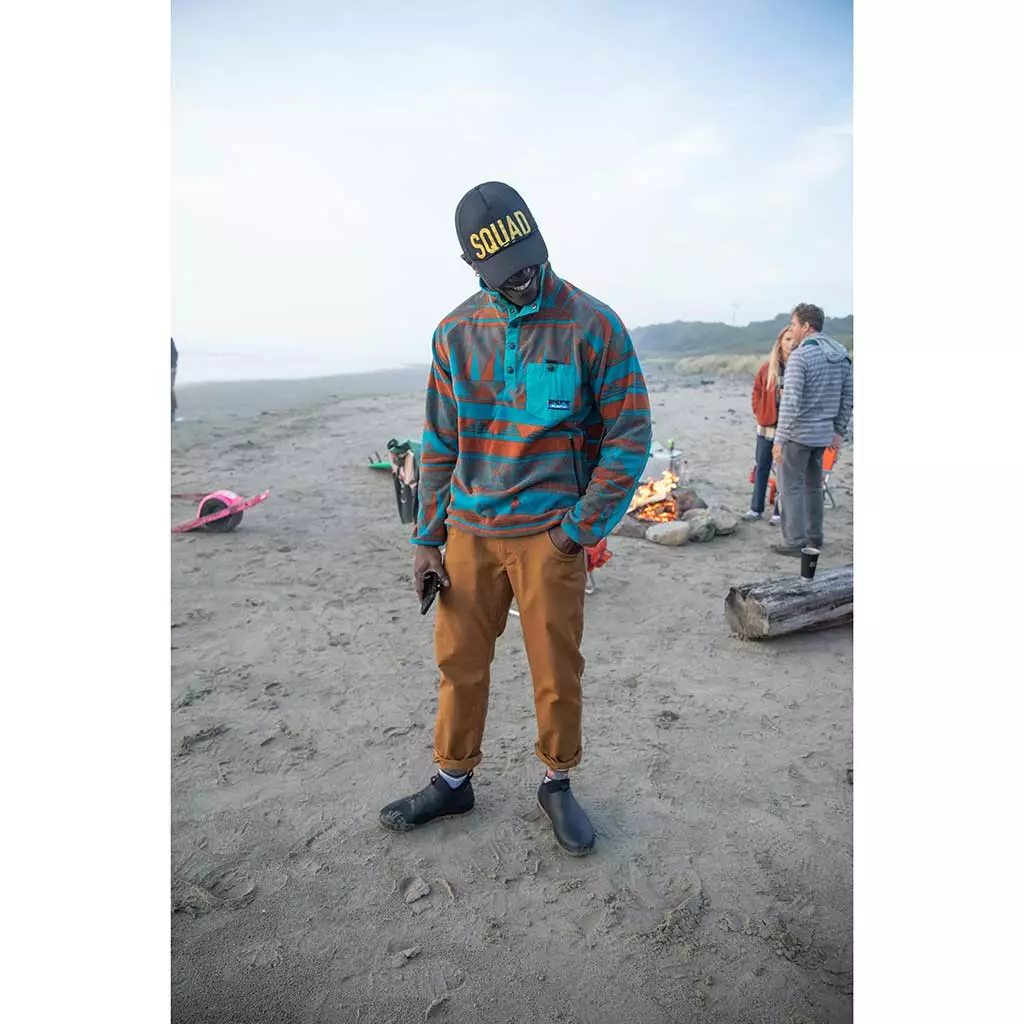 Ever done that thing where you rest your forearms on the bar while you wait to order, only to realise that it’s covered in stale beer and sticky spilled sambuca? Apparently, the folk at KAVU have too. Their Teannaway fleece comes with what they call ‘bar armour’ – a reinforced woven fabric overlay that runs from elbow to wrist. Apart from that, the Teannaway is your classic relaxed fleece pullover for chillier evenings on the beach or campsite, built in KAVU’s signature surf style. No boring block colours here, thank you very much – these patterned prints ooze plenty of fun and charm. The half-placket neck features rubberised snaps and taffeta detailing, and there’s a cosy kangaroo pass-through pocket to keep those hands toasty warm when you’re standing around the campfire