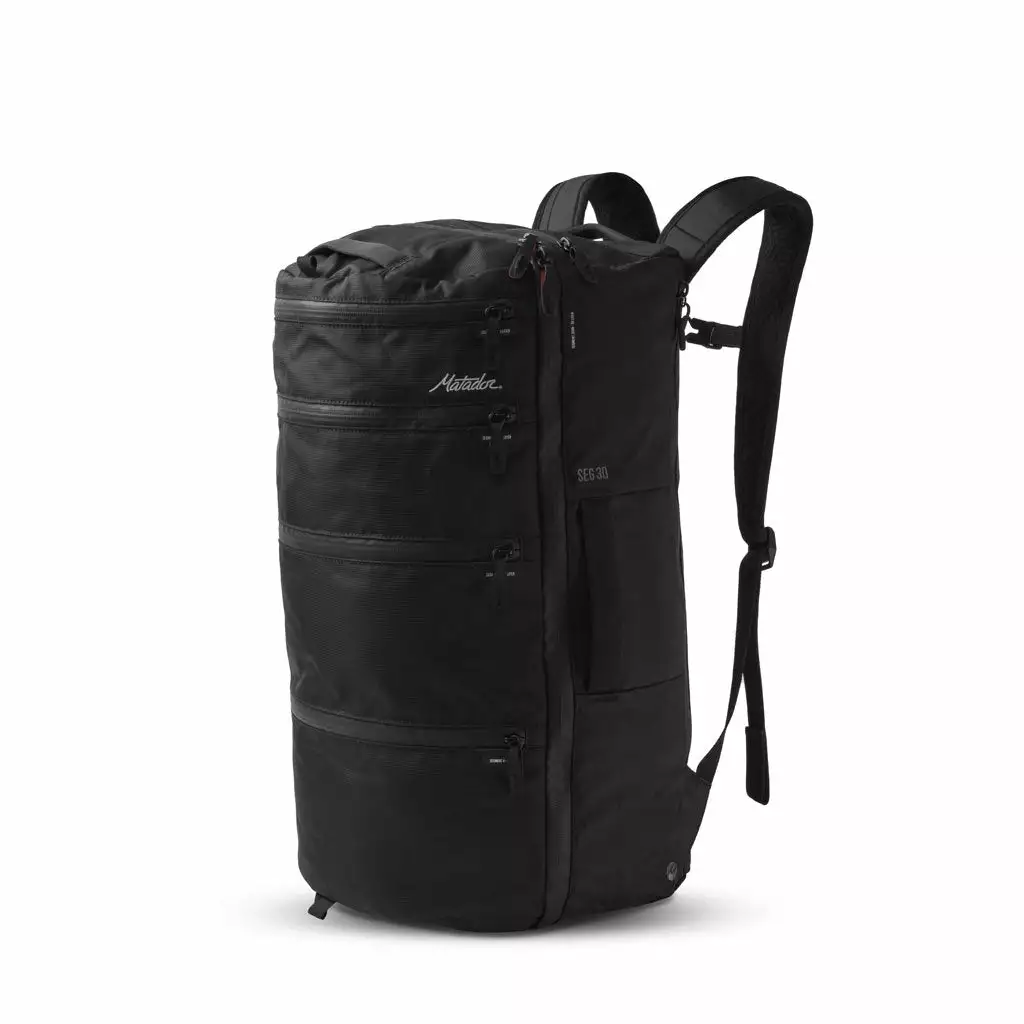 Travelling with a single bag is the least stressful way to navigate through airports, train stations and bus stations. But the problem with having everything packed away in one place is that it can be tricky to find what you need quickly. Matador’s SEG30 combines the best bits of a backpack and duffle bag, utilising a new sleek and sophisticated architecture designed for straight-up organisation. Access the full volume of the bag through the segmented zipper pockets, and choose to sort your stuff by type, day, or activity. Separate large items or dirty clothes by stowing them in the oversized clamshell pocket. There’s also an external water bottle pocket and a padded laptop sleeve for fast access to your Nalgene or Netflix.