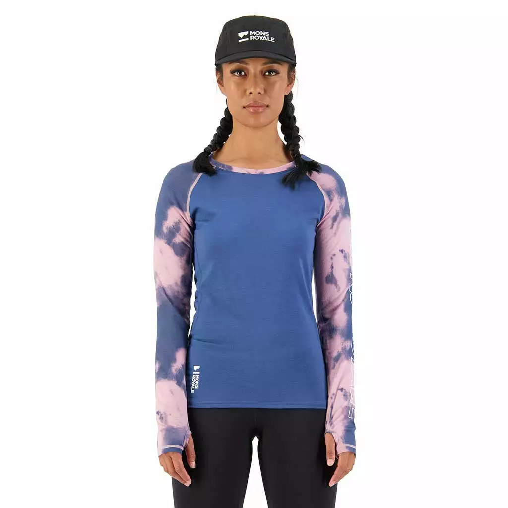 Forget the shapeless basic base layer or clingy skin tight top. This is a long-sleeve layer designed for high performance in the mountains and cut for shape and comfort. One of the problems with straight cut tops is that, if you have a smaller waist and rounder hips, they often ride up, bunching at the belly button to reveal your lower belly and back to the freezing wind. It’s cold and constantly pulling the hem of your top down is annoying. Not so here. Contoured at the sides, the Bella Tech LS works with your curves so it fits well, looks good and, cut slightly longer at the back, keeps you snug and warm all over, all day. Made from naturally breathable and odour-resistant Merino blend fabric it provides exceptional temperature regulation with a mesh back panel to wick away sweat fast – no more cold sweaty back when you finally slow down. Available in a range of classic colourways and exclusive denim tie-dye