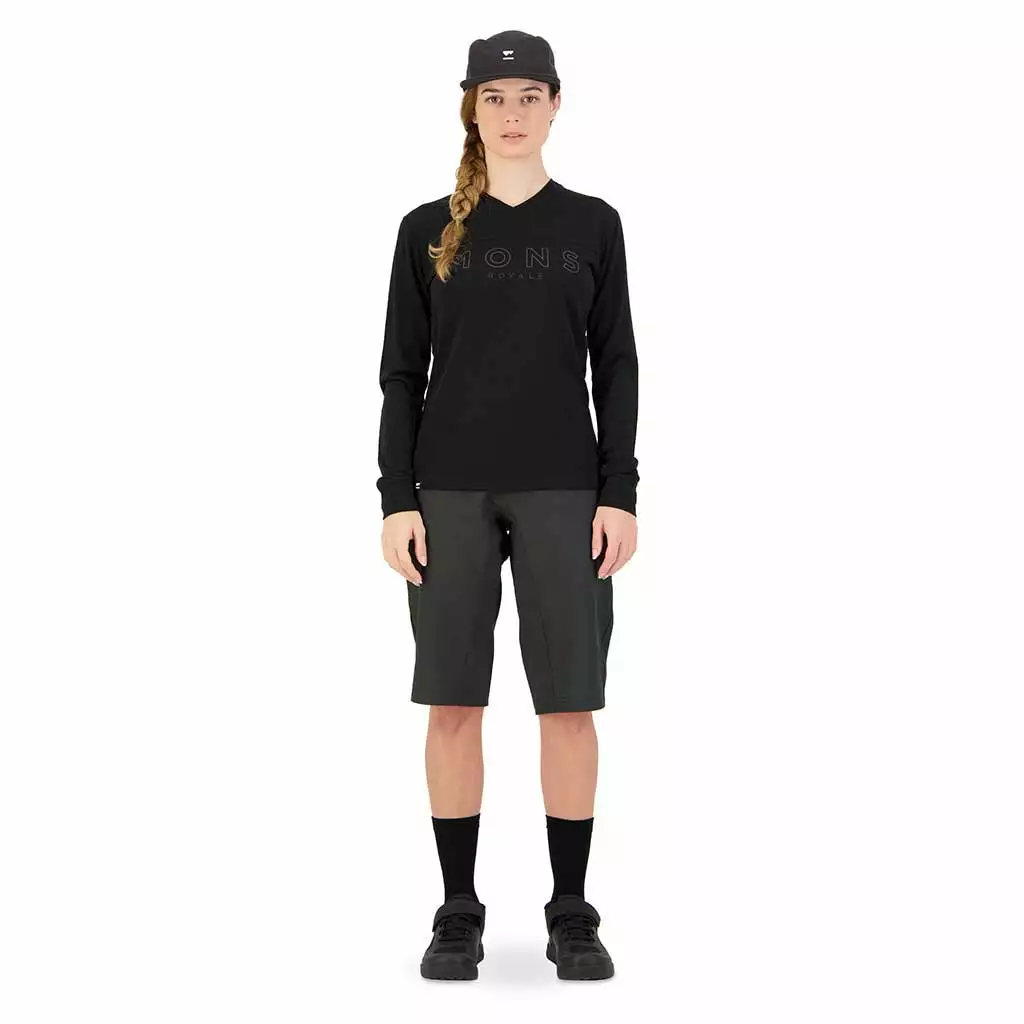 A warm and breathable long-sleeved biking layer that’ll work equally well as casual wear, the Redwood Enduro VLS features a high V-neck and a slightly scooped tail to protect you from the dreaded ‘cold kidney’ when you’re hunched over the handlebars. It’s made in Mons Royale’s ‘Merino Air-Con’ material, featuring soft merino fibres wound round a durable nylon core with a dash of elastane for stretch. It’ll see you through long, hard-playing days on the bike and into the pub afterwards. The fit is nipped in enough to be flattering to most shapes, without looking like it’s been sprayed on