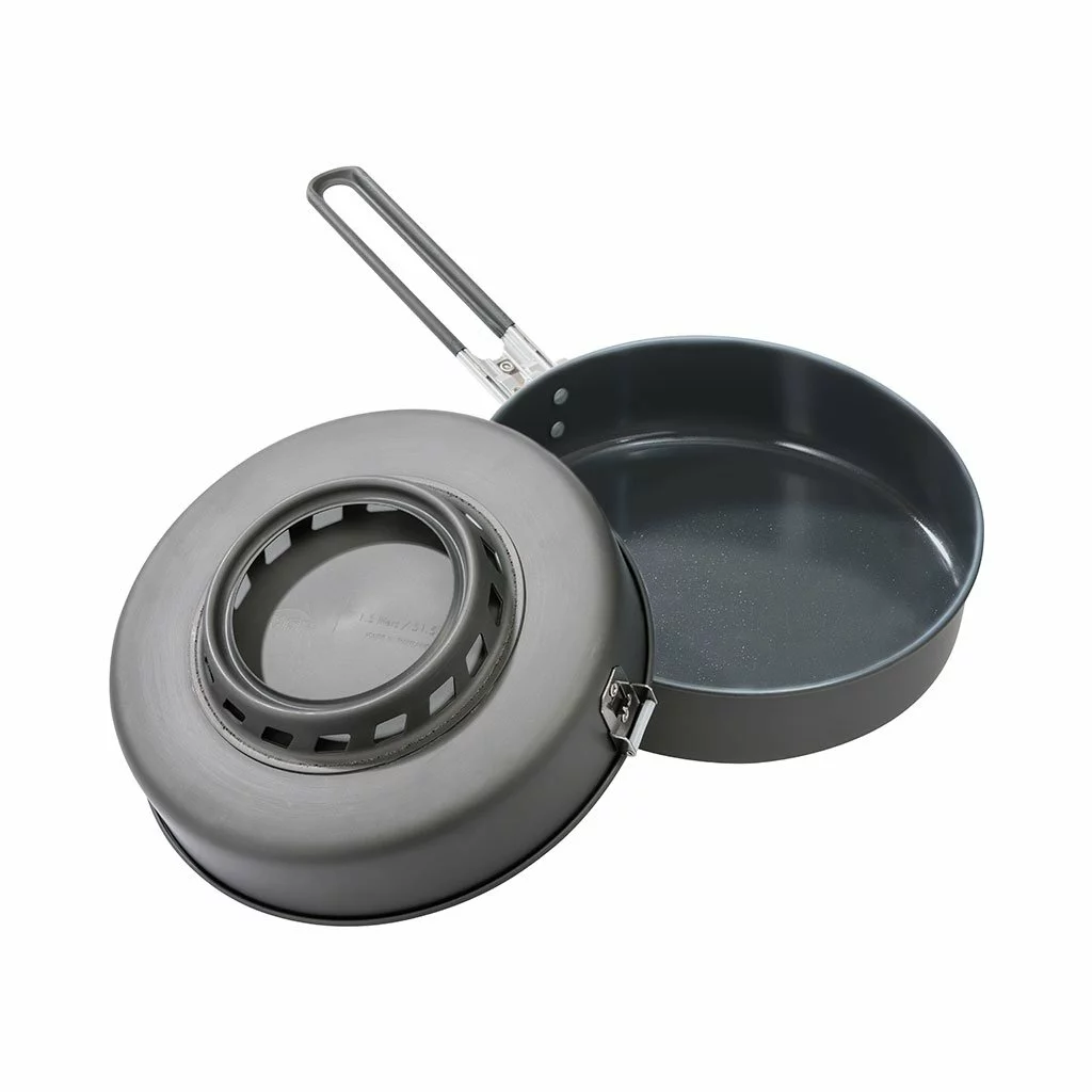 - Skillet nests outside WindBurner 4.5-litre stock pot for optimum packing efficiency
