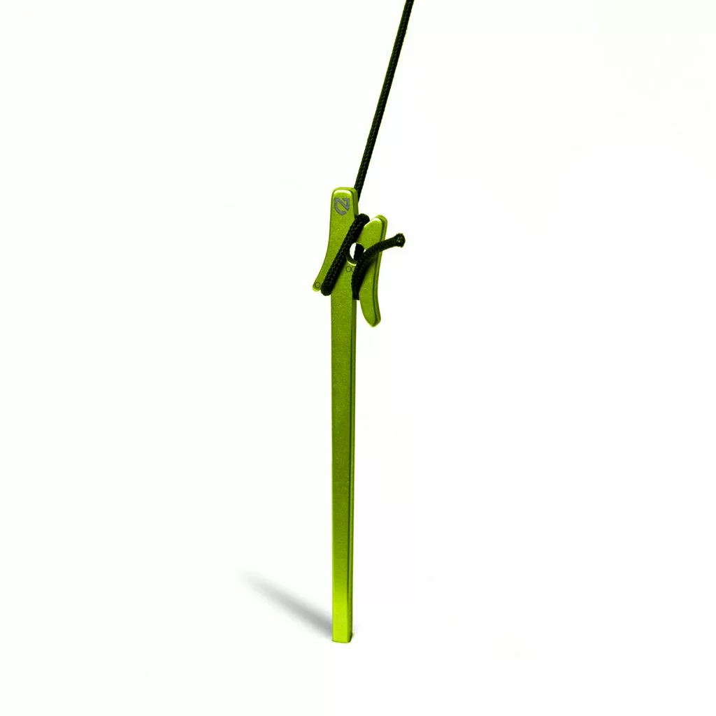 Airpin’s three-point locking system holds cord tight and eliminates the need for knots, cord locks or guyout tensioners. The tapered geometry is ideal for driving into the ground and the 7075 aluminum offers superior strength for its minimal weight.