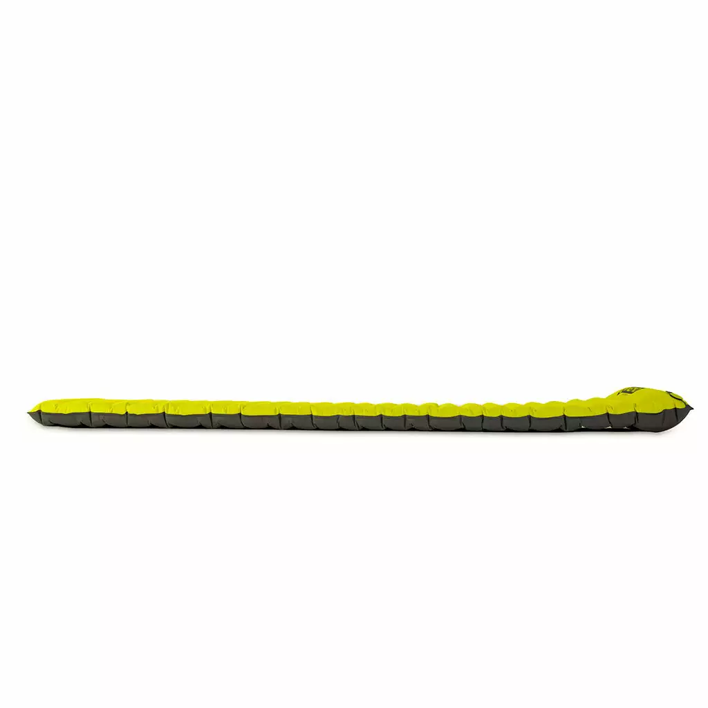 Tired of tossing and turning in your tent at night? Try NEMO’s Astro for size. It’s a plush, cushioned and sustainably made pad designed to boost comfort levels, while still being light enough to take camping or backpacking. Boasting a generous inflated thickness of 3.5 inches, plus durable soft-touch fabrics and a lateral baffle construction, it provides bed-like comfort on any type of terrain. Upgraded materials for 2022 include 75D RPET bluesign-certified polyester fabric and 100% post-consumer recycled Primaloft insulation. Lateral baffles are more comfortable than vertical baffles and prevent the sides of the pad from curling around your body. The large Pillow Baffle at the head end of the pad ensures that your pillow doesn’t slide off in the middle of the night and gives a couple extra inches of height to bolster your camp pillow. A unique Laylow zero-profile, multi-functional, micro-adjustable valve offers convenient inflation and deflation, and is easy to tweak for truly personalised comfort. It’s designed to work perfectly with the newly included Vortex pump sack too