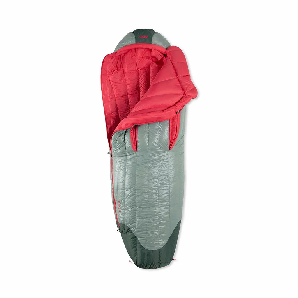 - Opposite-sided zippers on Riff Men’s and Women’s models increase versatility by allowing them to be zipped together into a double sleeping bag