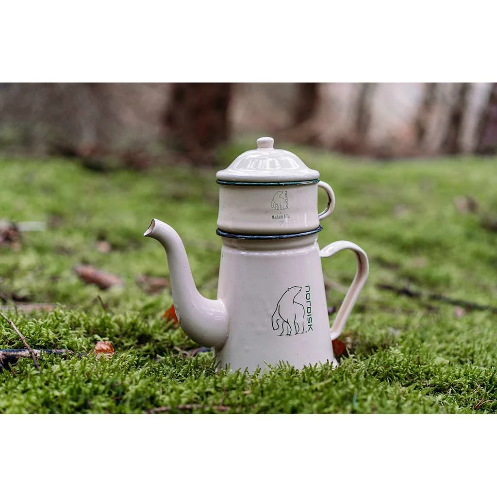The history of Danish enamelware goes back to 1895, and today generations of Danes still associate iconic products like the Madam Blå coffee pot with ‘hygge’, the Danish concept of cosy, comfortable contentment. Nordisk’s reinterpretation of this design classic will bring this mood into your daily life – whether you’re camping, glamping or sipping coffee with friends and family at home. With its Scandi-inspired retro styling, the Madam Blå coffee pot looks great, but is also eminently practical, making it perfect for daily use or for adventures in the great outdoors