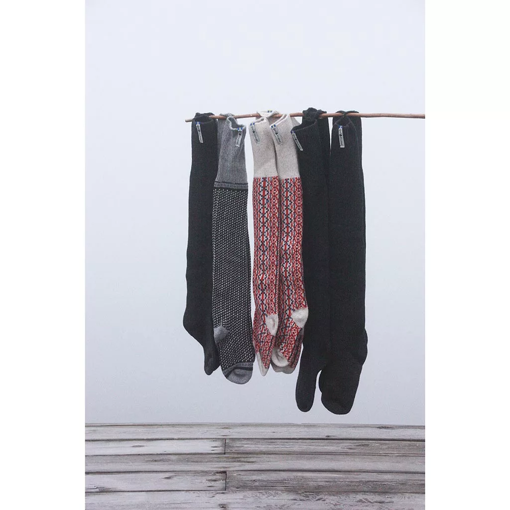 Knitted from premium lambswool blended with a little nylon and Lycra for added strength and stretch, these socks are designed to keep you warm in the coldest, darkest depths of winter. Reaching to just above the knee, they’re based on traditional styles that were worn with Swedish women’s folk skirts, so they provide plenty of coverage. The result is a luxuriously cosy yet slim-fitting pair of socks that you can wear whether you’re tramping in frozen forests or just practising a little fireside hygge