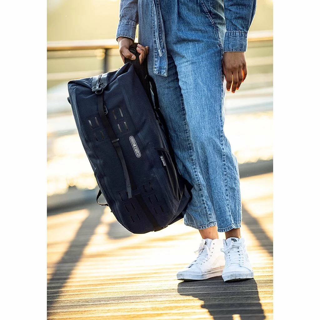 - Sustainability through Longevity – ORTLIEB’s hallmark is 100% waterproofness. High quality fabrics and welded seams are totally waterproof up to a 100,000 mm water column and all ORTLIEB product closures are submitted to a field simulation test. ORTLIEB stands behind the quality of every product with a 5-year warranty