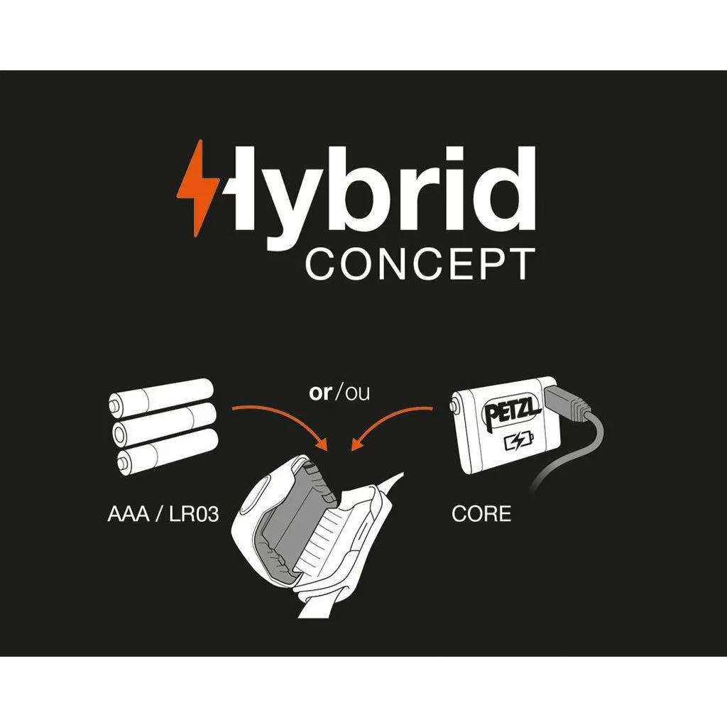 - Hybrid concept design means that although the ZIPKA comes with three standard AAA batteries, it is also compatible with Petzl’s CORE rechargeable battery (sold separately)