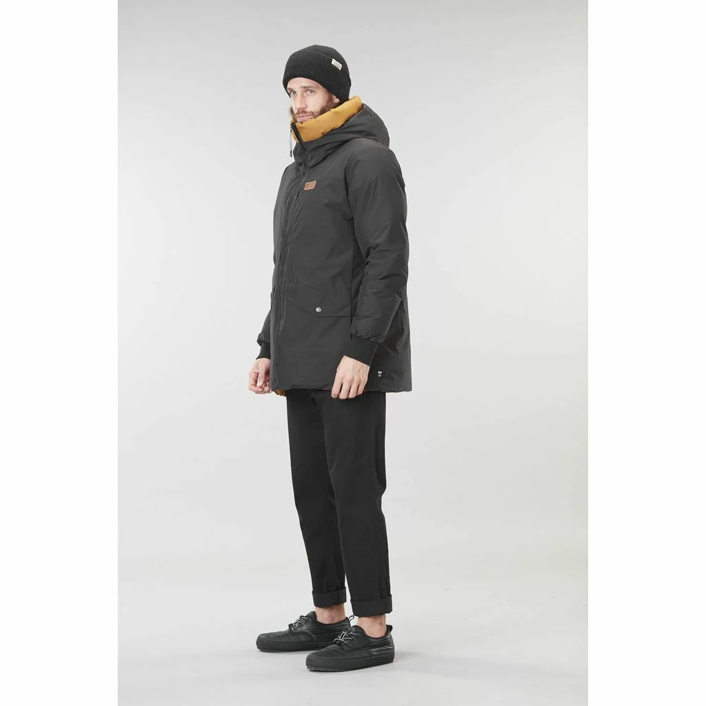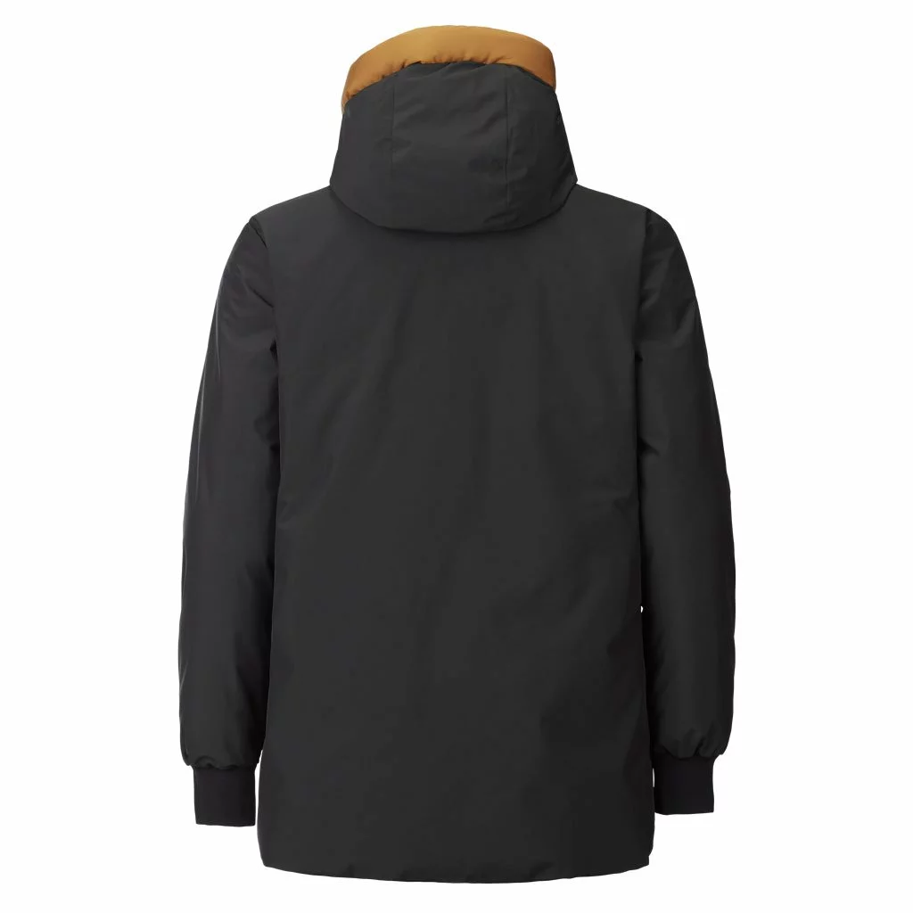 - Reversible parka with a waterproof-breathable membrane and synthetic loose fill insulation for added warmth