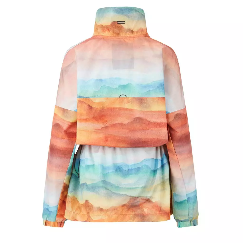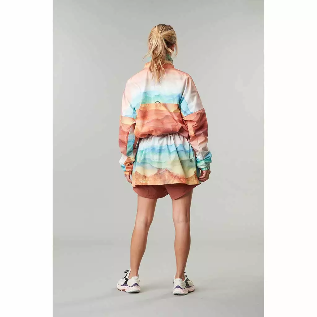 When the wind picks up, the Delva packs out. This light windbreaker top is made for warm weather adventures, rebuffing wind and rain to keep you warm and dry. This unique style from eco outdoor brand Picture has a long, loose cut with a hem that comes down to the upper thigh, a drawstring adjustable waist, and a collar that comes up to the chin. This gives way more coverage than most other jackets. Made from a windproof, ripstop fabric with PFC free durable water repellent finish, it’s durable and weatherproof, strong enough to handle the roughest and rockiest adventures. And when you don’t need it, it packs away into the kangaroo pouch on the front. In two nature-inspired colourways, one a retro terracotta colour block, the other referencing ‘The land of the seven colours’, the bare earth dunes of the Chamarel region in Mauritius. It’ll protect you on adventures and inspire you to take them