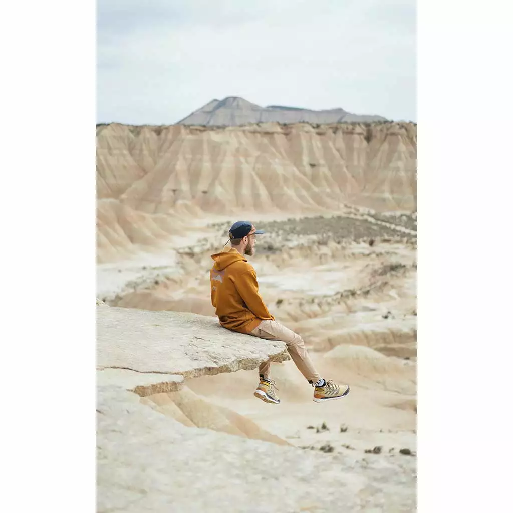 Rebellious French boardie brand, Picture Organic, are all about keeping their environmental footprint down while serving up top-quality kit, and this warm but technical outdoor hoodie is a case in point. Made in 100% recycled polyester, the inside is deliciously comfortable brushed fleece. It’s got a cosy kangaroo pocket for your hands, while the hood features a high neck and a fitted design that moves with your head rather than making you feel like a mediaeval monk. The Flack hoodie is quick-drying and wicking, and also comes with an anti-microbial treatment that should mean you can nip in for a beer on your way home from the trail without clearing the bar. Reflective details will keep you that bit safer after dark, while the ribbed hem and cuffs ought to stave off those post-exercise shivers