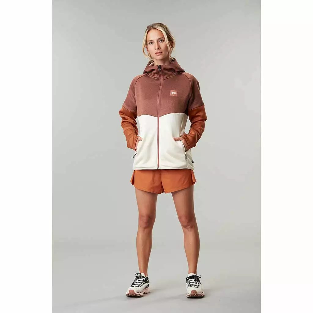 Made of thick and warm material, brushed on the inside so it feels pyjama soft against your skin, this is a hoodie to nestle into. That doesn’t mean it’s only for lounging – the opposite in fact. This is for keeping you warm while you’re active, pulling on when a cold wind whips up, and bundling into at the cafe with your hands wrapped around a hot chocolate. Its thick, soft fleece fabric is made from 100% polyester with anti-odour and moisture wicking properties to keep you comfortably dry and smelling like fresh air (not the inside of a shoe, as some do). Then there are the little details: an ergonomic hood which moves with your head for an unobstructed view while you’re active, an elasticated hem to trap warmth, and reflective detailing. Plus the slightly retro, colourblock style. Active women who like colour and tend to run cold – this is for you