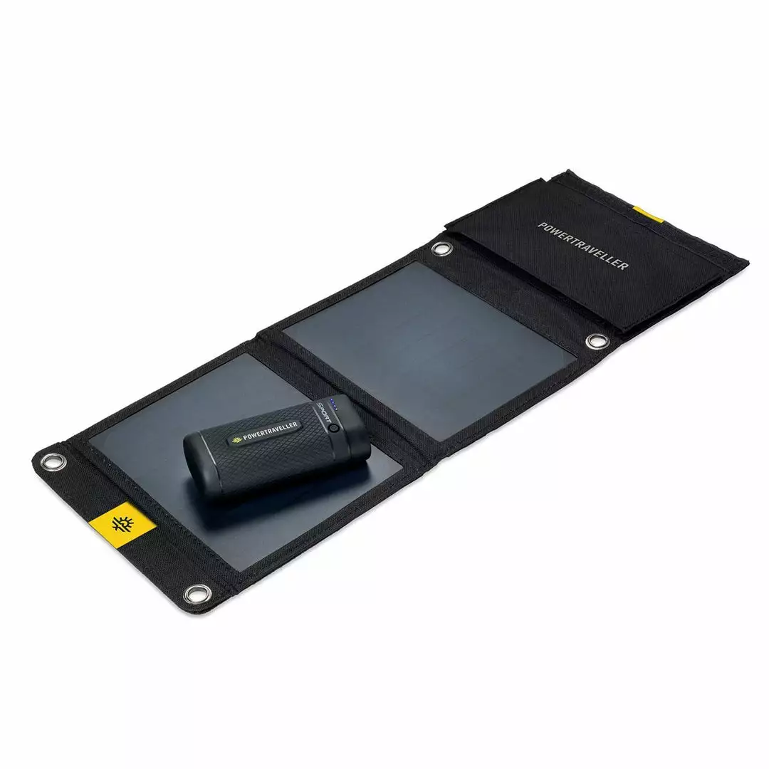 This small, compact and lightweight charging system brings two of Powertraveller’s most useful gadgets together in one kit. The Sport 25 is a rugged 6,700mAh power bank for charging tablets, smartphones, GoPros and more via two high-speed USB ports. It is dustproof and waterproof, and also has a built-in 150 Lumen torch – ideal for tent camping. The Falcon 7 is a foldable and splash-proof solar panel that features high-efficiency monocrystalline SunPower cells with a power output of 7W, housed in a lightweight yet durable fabric unit. Metal eyelets and two mini carabiners make it easy to attach the Falcon 7 to your pack, while the single USB port, adapter and cable gives you all you need to charge either the Sport 25 battery charger or a device directly.
