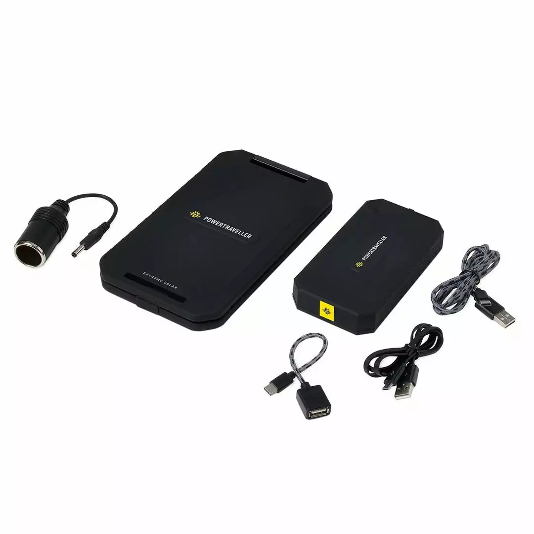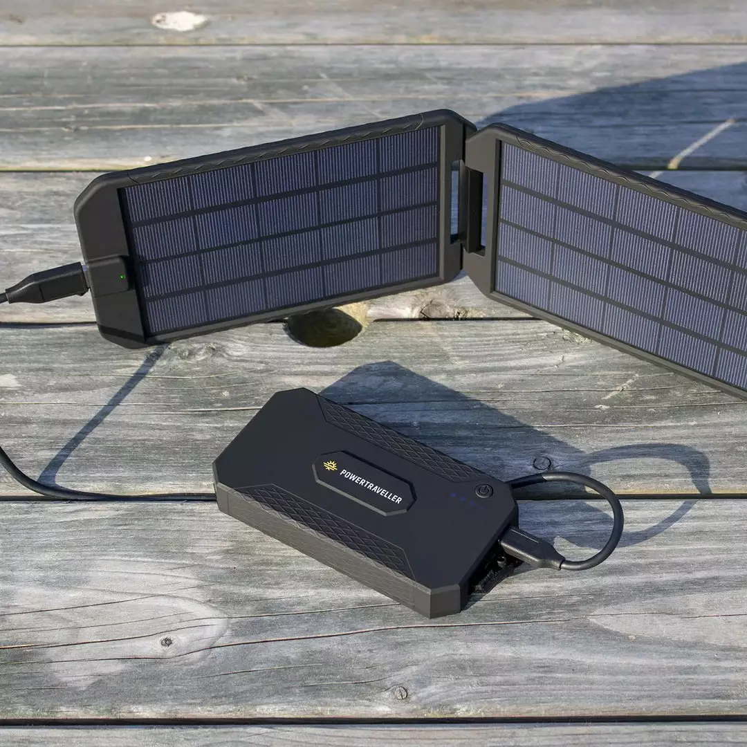 Designed for multi-day trips into the wilderness, the Extreme Solar kit combines a powerful 12,000mAh power bank and a separate clamshell folding solar panel that delivers a max output of 5W. It can give up to five full smartphone charges and is equipped with USB, USB-C and 12V DC outlets for charging other devices, from SLR cameras to GPS units. It’s housed in a tough, rugged, waterproof case with an IP65 rating, meaning it is dust-proof and waterproof. The compact and lightweight solar panel unfolds to 210 degrees and will charge in low light conditions. A flashing LED light shows green for optimum charging, red for lower-quality conditions. It also comes with a Velcro strap that enables you to attach the panel to a rucksack.