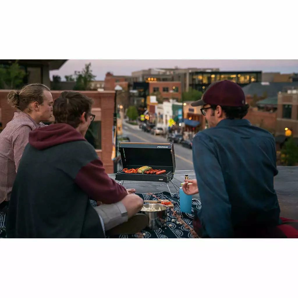 Who doesn’t love to grill out? But if you don’t want to be restricted to your own backyard, your BBQ choices are usually a little limited, unless you’re prepared to use one of those cheap, nasty and messy disposable BBQs. Which, let’s face it, not only leave ugly burnt patches all over our parks, but are also not very good. Primus’ Kuchoma stove is different. It’s a portable grill that is as familiar as your back garden BBQ but can be carried with one hand. The gas-powered design fires up with a push-button Piezo igniter. The horizontal burner tube provides even heat and 8500 BTU (2500W) of power, while the deep steel hood seals in heat and flavour. It’s the perfect choice for grilling sausages, steaks, burgers, kebabs, veggies and more. It’s a practical outdoor companion too, with foldable legs that lock in the upright position to provide valuable additional table space. When you’re done eating, a removable ceramic non-stick grill and stainless-steel drip tray make cleaning easy. Lastly, the lock and carry handle makes transporting the grill simple