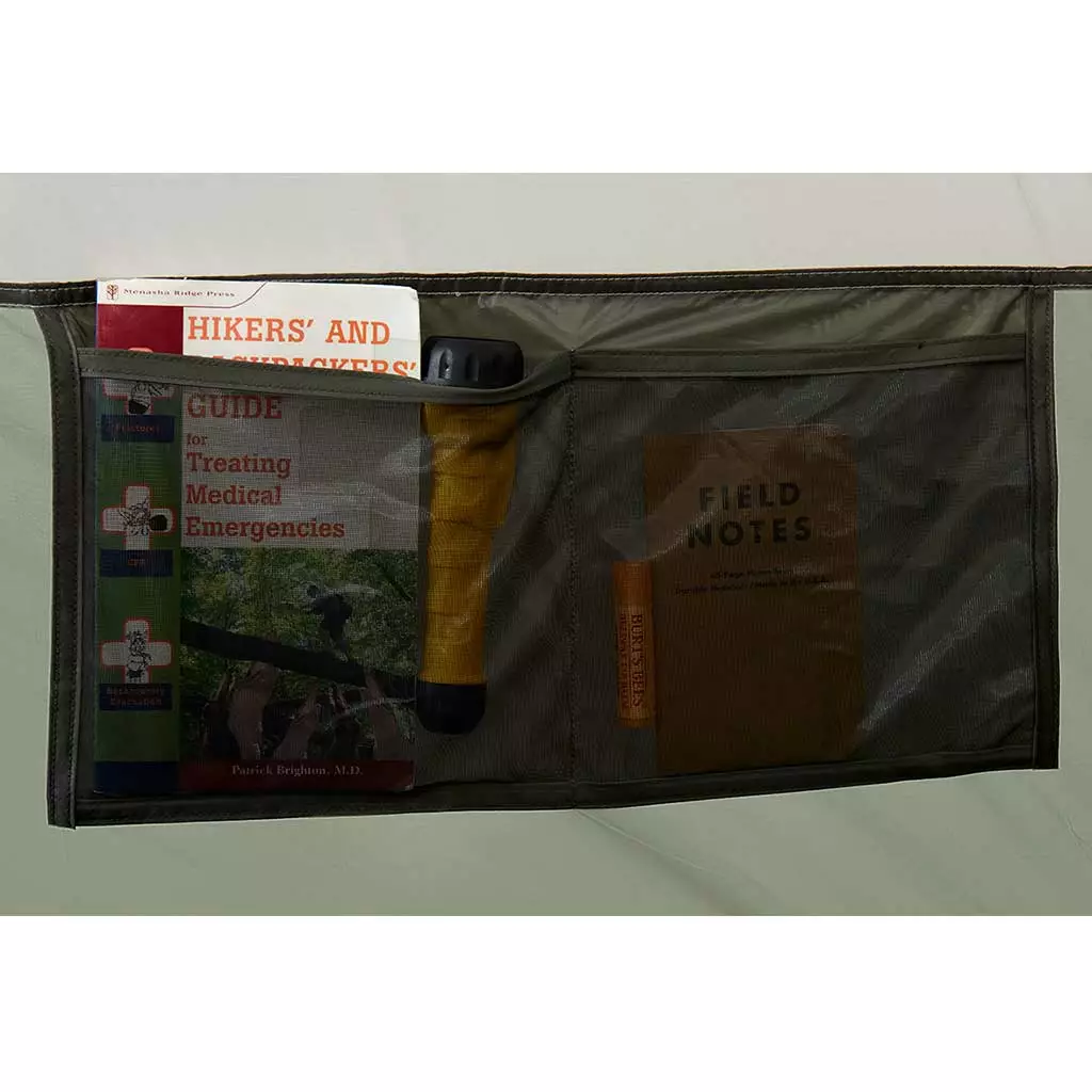 - Large full coverage fly with single vestibule and brow pole for ample storage space