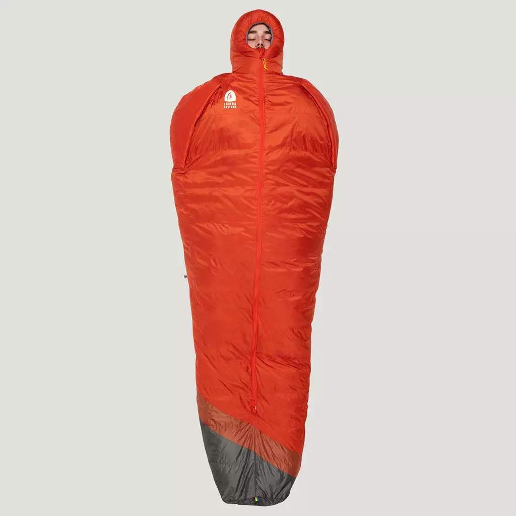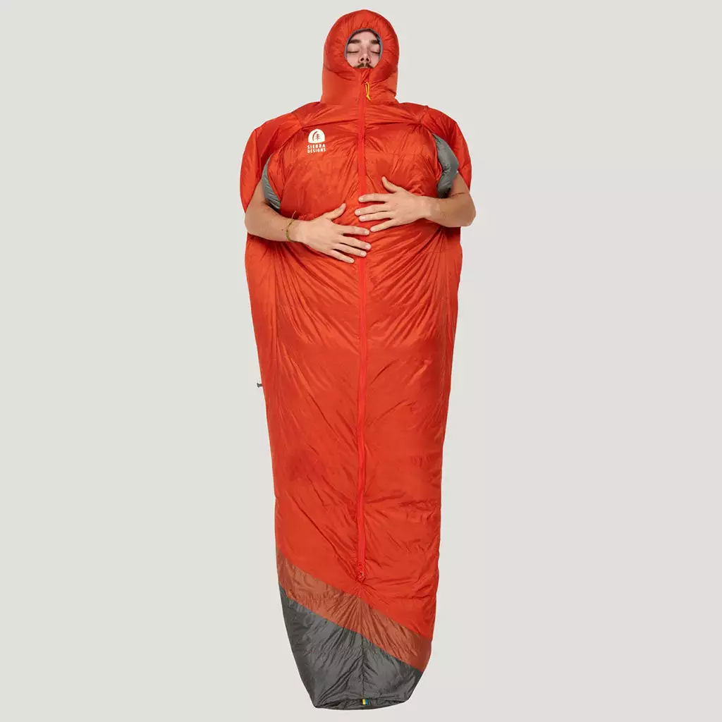 Not even the puffiest down jacket can compare with the warmth of a good down sleeping bag. Problem is, sleeping bags aren’t really made for wandering around camp, unless you’re prepared to hop about like you’re competing in some sort of bizarre campground sack race. There is one exception though – Sierra Designs’ awesome Mobile Mummy. As the name suggests, it’s a wearable mummy-style sleeping bag with a practical centre-front zipper, armholes at either side and a tuck-away footbox that enables you to wander at will whilst still staying warm and cosy. You can sit, stand, read a book and enjoy a cup of coffee, all without getting out of your sleeping bag. And unlike inferior rivals, the Mobile Mummy is a viable option for properly cold camps, with a -3°C comfort limit and a -9°C lower limit. That’s due to its lofty 800 fill power down insulation and advanced baffle construction. A technical bag with fun and practical features, there’s really nothing else like it