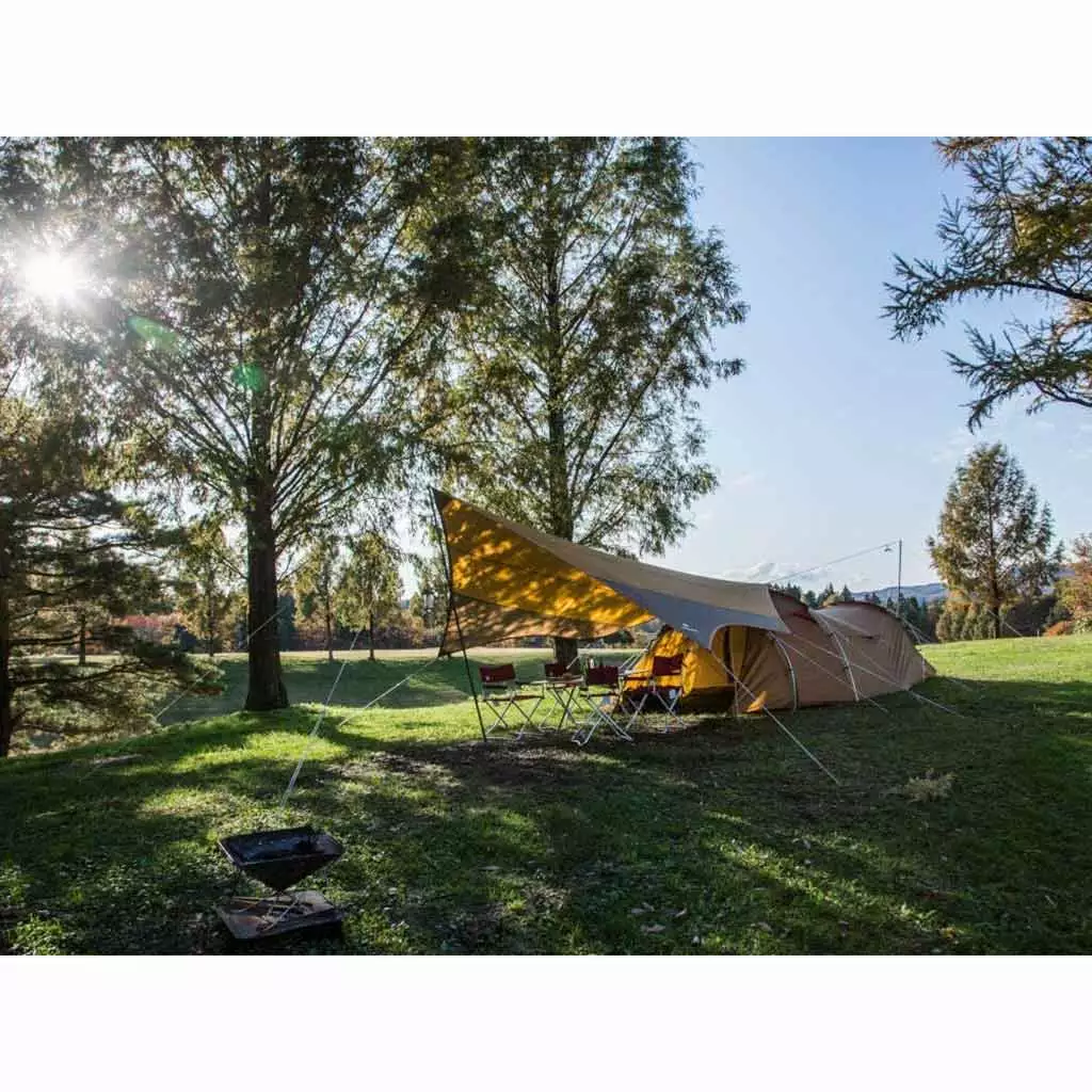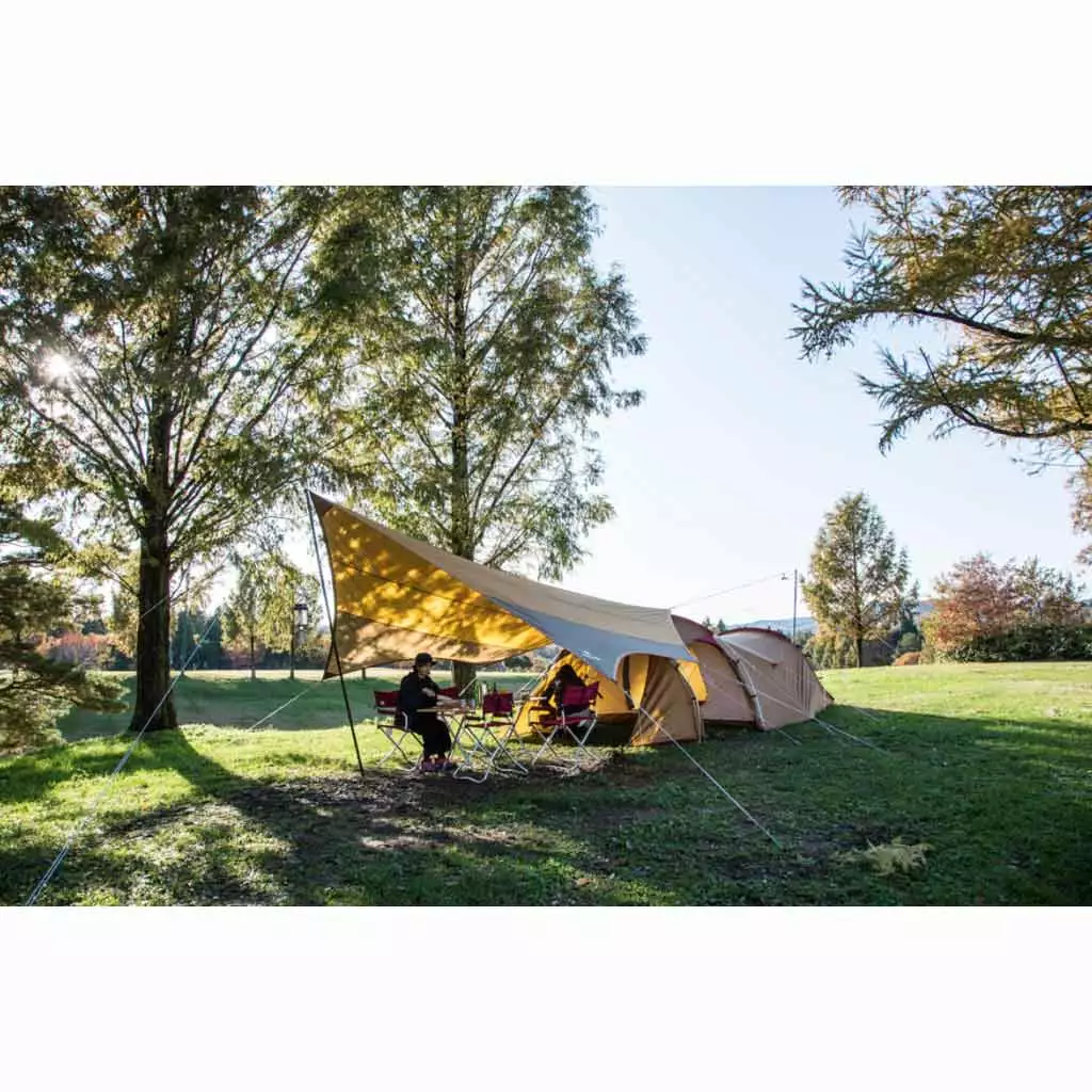 - Tarp Contents Include: Tarp body, Connection tape, Steel pole (280 cm, 240 cm), Steel peg 30 (×8), Tensioning Rope with slider (2-forked 10m x 2, 3 m × 2, 2 m × 2), carry bag, pole case, peg case